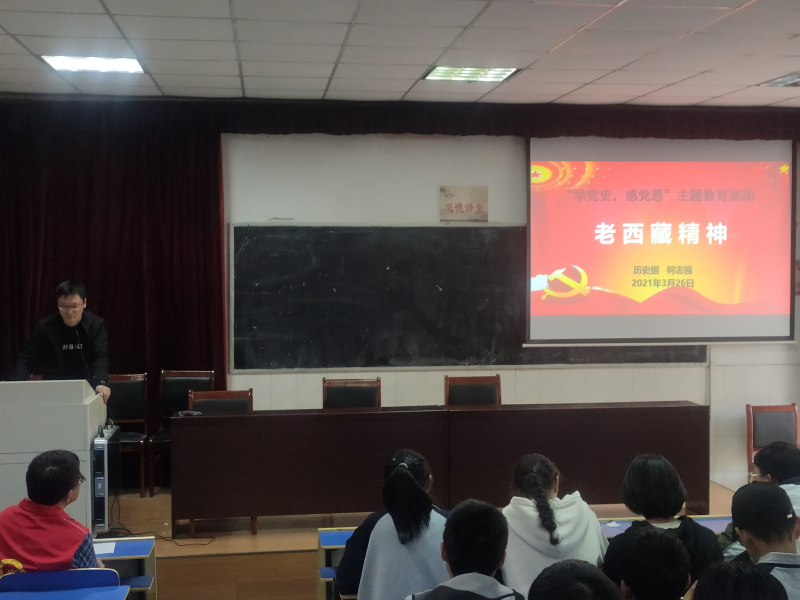 安徽師范大學(xué)歷史系研究生、我校歷史教研組組長柯志強(qiáng)老師圍繞什么是“老西藏精神”、“老西藏精神”是如何形成的、“老西藏精神”有何現(xiàn)實(shí)意義三個方面,講述 “老西藏精神”的形成過程、核心內(nèi)涵、時代價值。