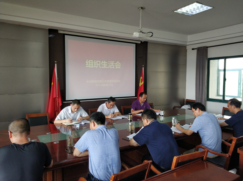 根據(jù)市教體局黨委統(tǒng)一部署,8月25日下午,市五中黨支部召開(kāi)黨史學(xué)習(xí)教育專(zhuān)題組織生活會(huì),市教體局黨史學(xué)習(xí)教育指導(dǎo)組組長(zhǎng)王立群四級(jí)調(diào)研員,電教館姚明山館長(zhǎng)、信息中心方捷主任全程參加了會(huì)議。