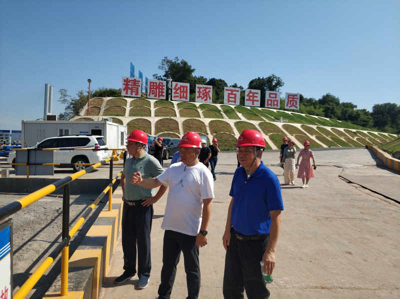 沐揚(yáng)一行慰問(wèn)了大橋施工人員,為他們送去了礦泉水、米油等物品,觀看了G3公鐵橋宣傳視頻,全面了解該項(xiàng)目的基本情況,隨后在交投集團(tuán)公司黨委副書(shū)記方勁松以及項(xiàng)目部負(fù)責(zé)人的帶領(lǐng)下,對(duì)施工現(xiàn)場(chǎng)進(jìn)行了實(shí)地參觀,切身感受工地建設(shè)者頂著炎炎烈日奮戰(zhàn)一線的艱苦拼搏精神。