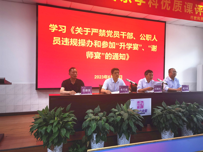 當(dāng)前,正值2023年度中考、高考招生錄取期間,是違規(guī)操辦“升學(xué)宴”、“謝師宴”問題易發(fā)多發(fā)期。為持續(xù)鞏固深化中央八項(xiàng)規(guī)定精神成果,馳而不息糾“四風(fēng)”樹新風(fēng),6月30日,第一黨支部組織開展主題黨日活動(dòng)。