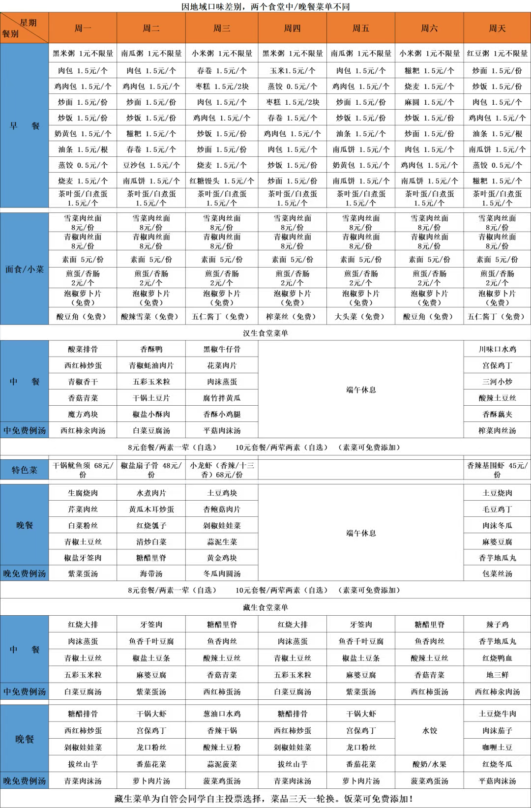 每周安排