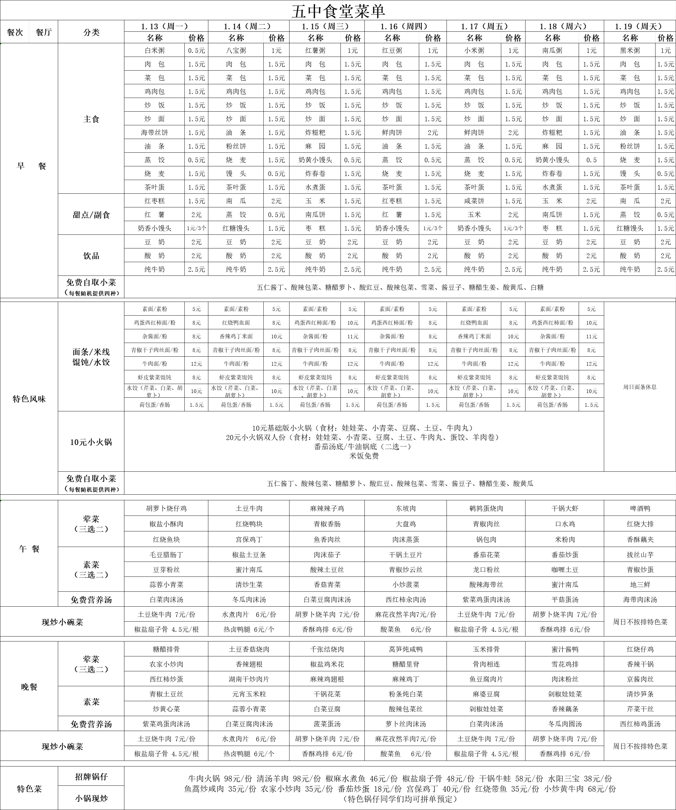 2025年1月13號-19號食譜
