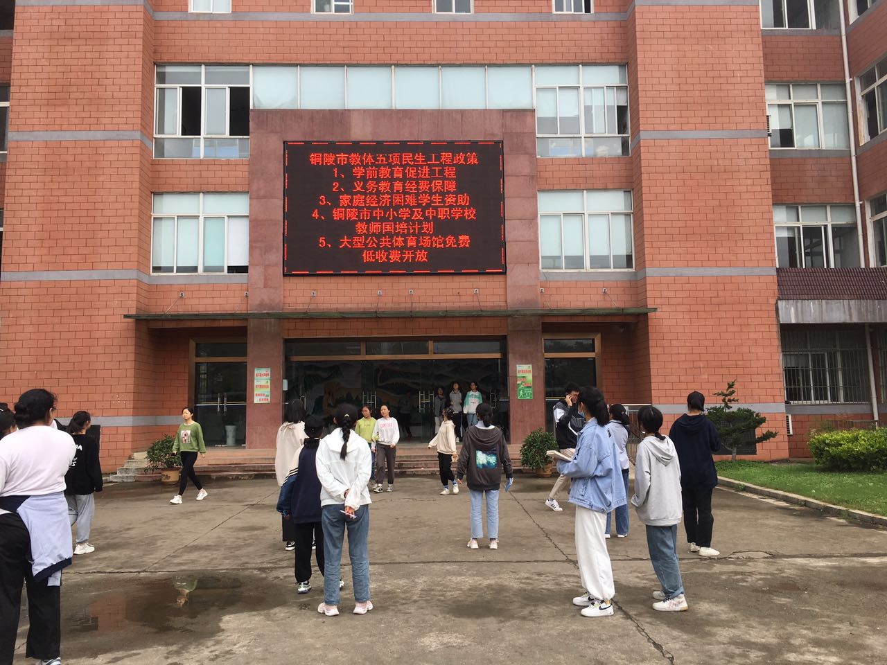 為貫徹落實(shí)習(xí)近平新時(shí)代中國(guó)特色社會(huì)主義思想和黨的十九大及十九屆歷次全會(huì)精神,持續(xù)做好保障和改善民生工作,2021年市教體局共承擔(dān)五項(xiàng)省級(jí)民生工程,分別為:1、學(xué)前教育促進(jìn)工程。2、義務(wù)教育經(jīng)費(fèi)保障。3、家庭經(jīng)濟(jì)困難學(xué)生資助。4、銅陵市中小學(xué)及中職學(xué)校教師國(guó)培計(jì)劃。5、大型公共體育場(chǎng)館免費(fèi)低收費(fèi)開(kāi)放。為保障我校全體師生、家長(zhǎng)對(duì)教體五項(xiàng)民生工程的知情權(quán),在校領(lǐng)導(dǎo)的統(tǒng)一部署安排下,我校開(kāi)展了形式多樣的宣傳工作。