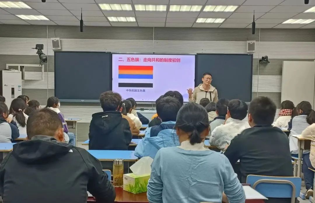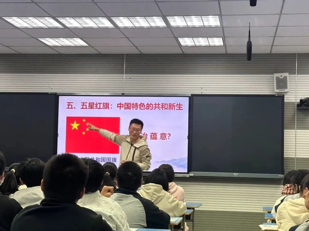 柯志強老師的授課課題是“中國近代至當(dāng)代政治制度的演變”?吕蠋熞“國旗”為線索對教材內(nèi)容進行大膽裁剪,創(chuàng)設(shè)情境分析大清龍旗、五色旗、青天白日滿地紅旗及五星紅旗等背后的政治蘊意,并通過橫向與縱向?qū)Ρ龋龑?dǎo)學(xué)生了解共和制在中國建立的曲折歷程,理解中國政治道路發(fā)展的獨特性,從而進一步堅定社會主義制度自信和道路自信。