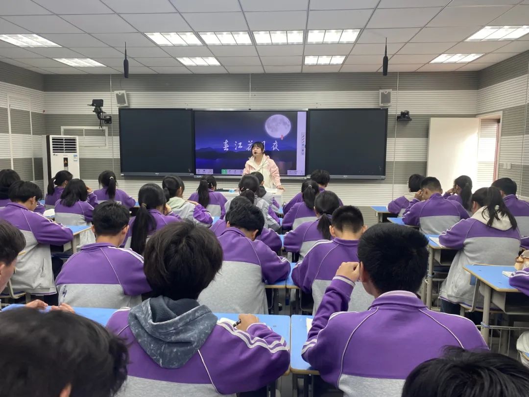 第二節(jié)課高204班袁野老師以《春江花月夜》為授課內(nèi)容展開(kāi)。張若虛的作品篇幅和難度在詩(shī)歌賞析中一直是學(xué)生的痛點(diǎn)和難點(diǎn)。袁老師巧用飛花令的方式引入“月”的意象,引導(dǎo)學(xué)生深入分析詩(shī)歌中不同的意象在抒情達(dá)意時(shí)需要從意象本身和意境塑造方面入手分析和評(píng)價(jià),加深了學(xué)生對(duì)詩(shī)歌本身內(nèi)容的理解。