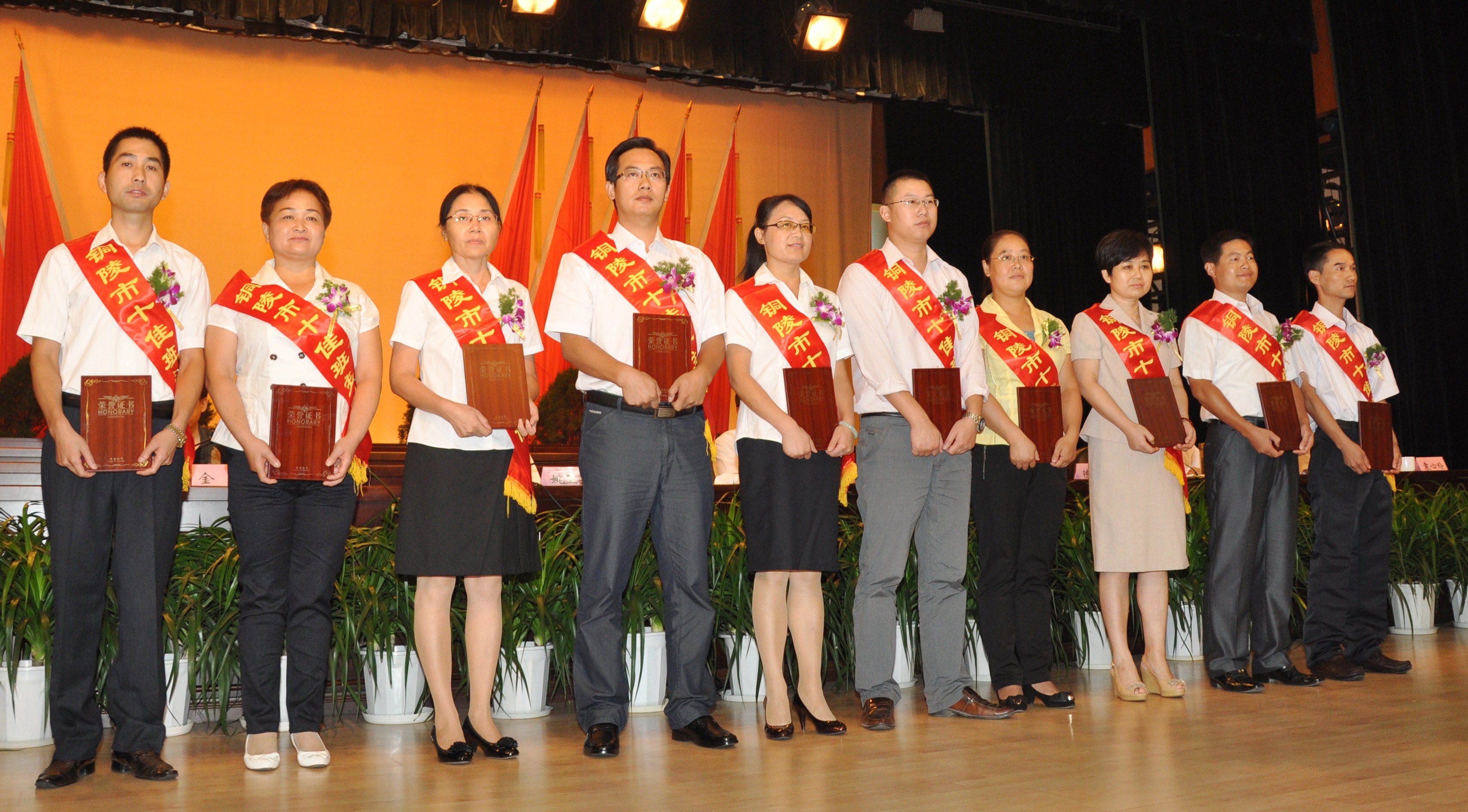 根據(jù)銅陵市教育局、人力資源社會保障局《關(guān)于開展第28個教師節(jié)評選表彰活動的通知》(銅教[2012]56號)精神,在各基層單位層層評選、公示、主管部門審核和社會公眾投票的基礎(chǔ)上,經(jīng)銅陵市第28個教師節(jié)表彰評選領(lǐng)導(dǎo)小組專家委員會評議和無記名投票,初步評定擬表彰人選。我校高106班(原)班主任周紅陽被評為市十佳班主任,并于 9月5日上午在市行政會議中心召開的“銅陵市推進教育現(xiàn)代化暨第28個教師節(jié)表彰大會”上接受了市委市政府的表彰。