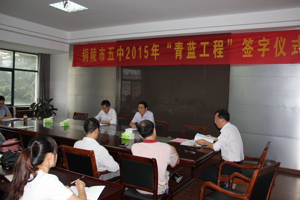 9月28日下午第四節(jié)課,我校2015年“青藍(lán)工程”師徒結(jié)對子活動簽字儀式在綜合樓四樓會議室舉行。