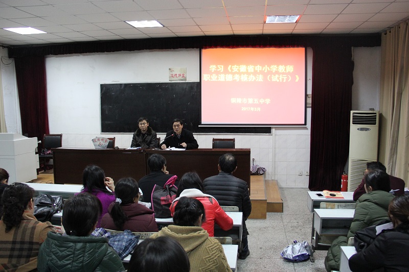 活動中,學(xué)校黨支部副書記楊克貴帶領(lǐng)全體教職工集中學(xué)習(xí)了《安徽省中職中小學(xué)教師職業(yè)道德考核辦法(試行)》的具體內(nèi)容,對辦法中的考核內(nèi)容進(jìn)行了詳細(xì)的解讀,對考核結(jié)果的運(yùn)用進(jìn)行了強(qiáng)調(diào)。沐揚(yáng)校長結(jié)合實(shí)際分析了當(dāng)前教師職業(yè)道德建設(shè)狀況,強(qiáng)調(diào)師德建設(shè)在學(xué)校日常工作中的重要地位,希望廣大教師對照考核辦法,規(guī)范自己的從教行為,嚴(yán)格要求自己,努力提升自己的思想道德水平,爭做有理想信念、有道德情操、有扎實(shí)學(xué)識、有仁愛之心的四有教師。