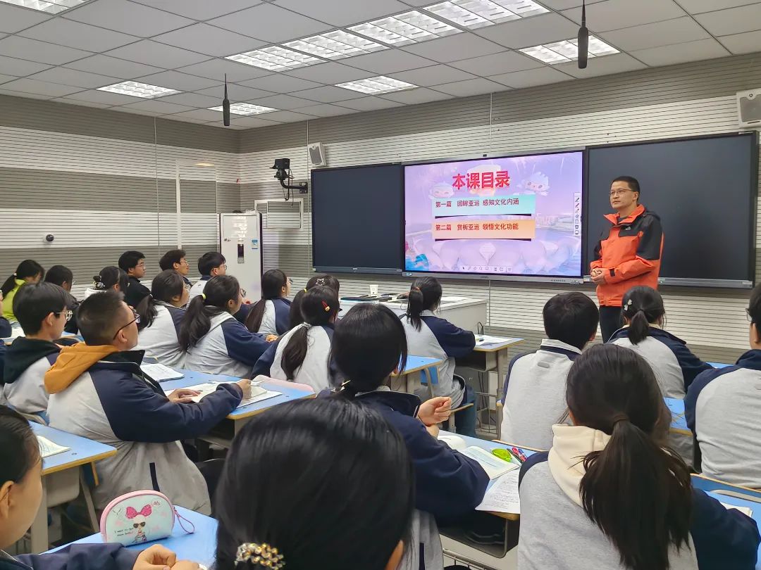 張勝利老師展示的是《文化的內(nèi)涵與功能》的新授課。張老師以“杭州亞運(yùn)會(huì)”這一時(shí)政熱點(diǎn)貫穿課堂,分“回眸亞運(yùn)——感知文化內(nèi)涵”和“賞析亞運(yùn)——領(lǐng)悟文化功能”這兩個(gè)篇章組織教學(xué),引導(dǎo)學(xué)生探究理解文化的內(nèi)涵、文化與經(jīng)濟(jì)政治的關(guān)系、文化的功能等知識(shí),增強(qiáng)學(xué)生對中華文化的認(rèn)同感,堅(jiān)定文化自信。
