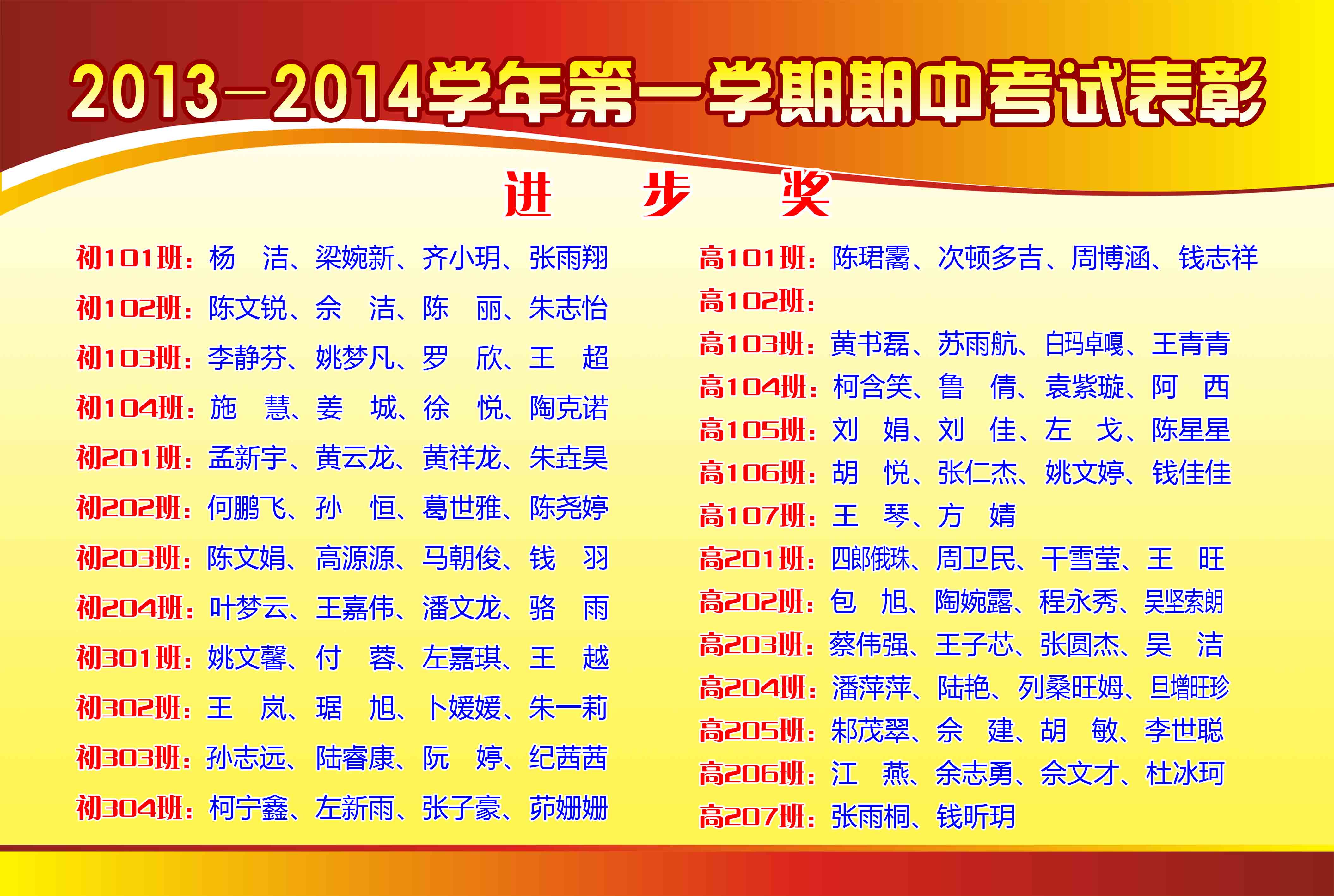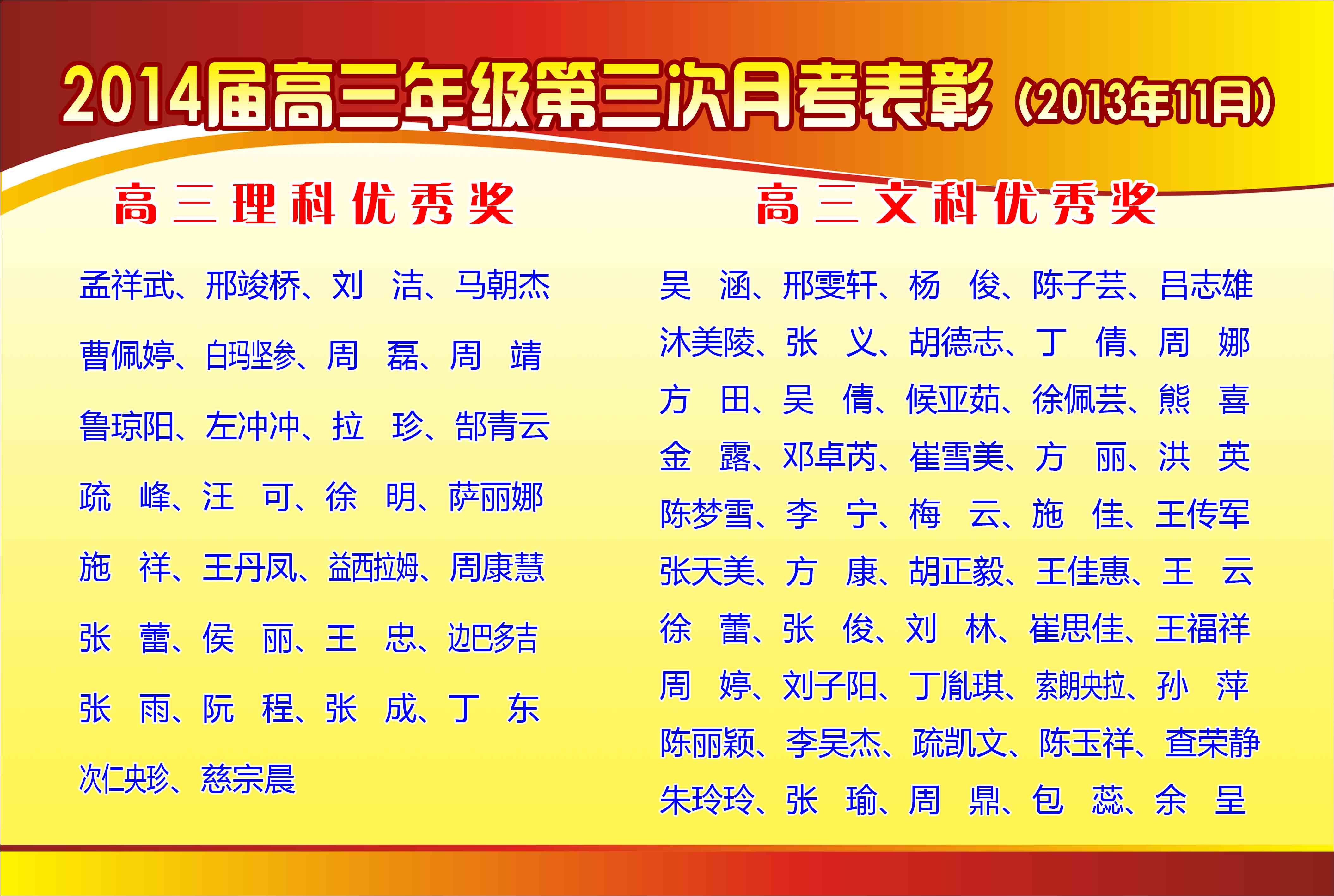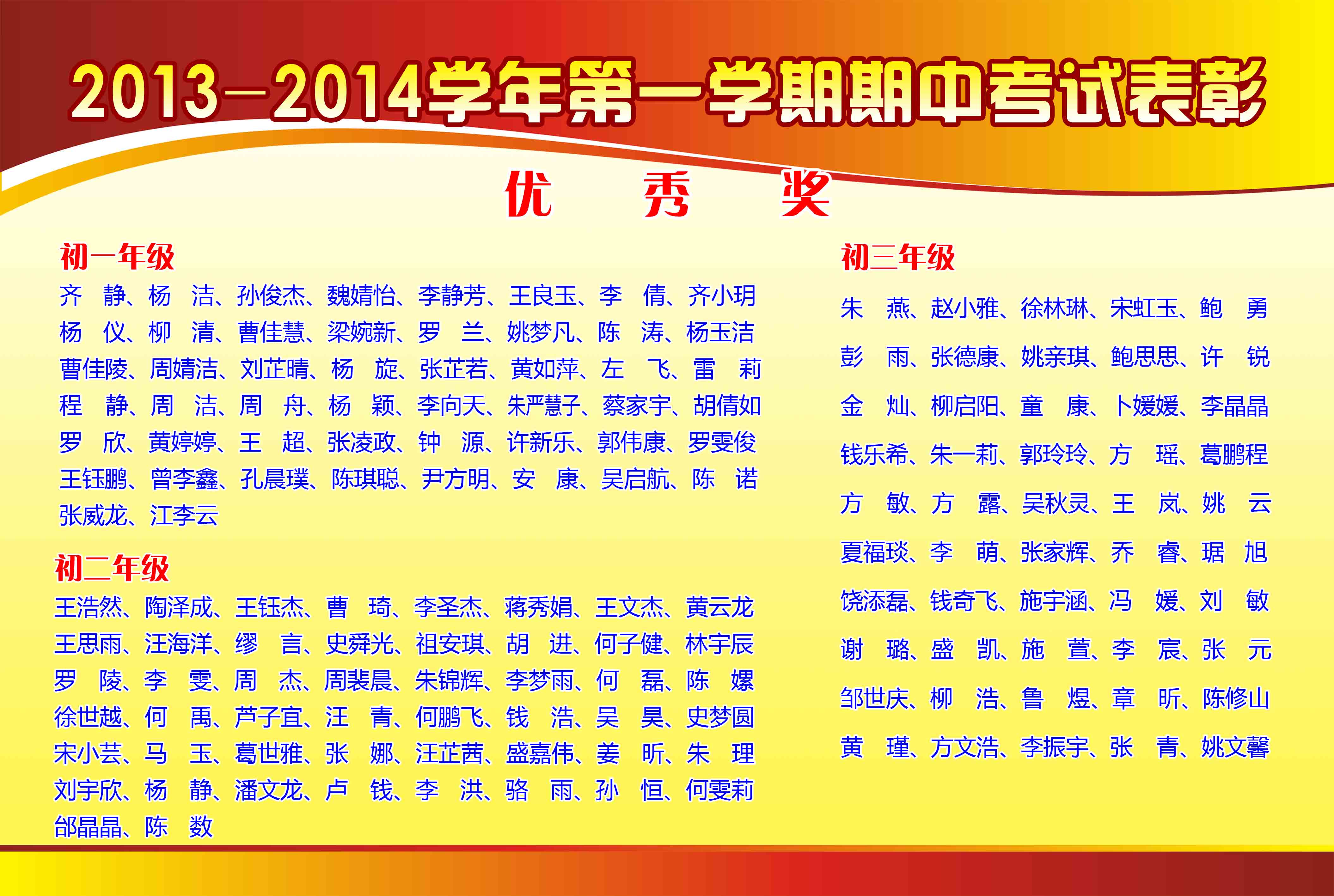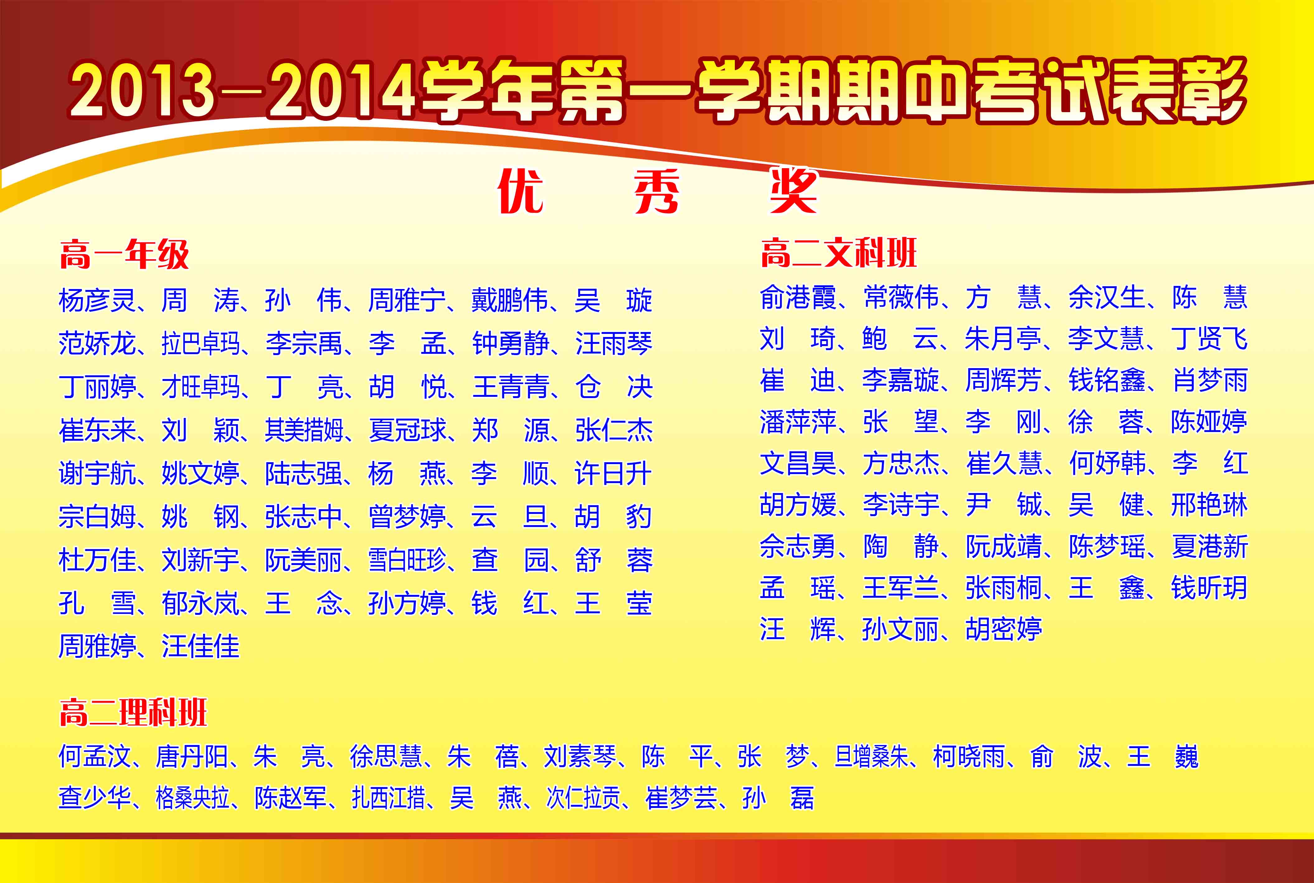 2013-2014學(xué)年第一學(xué)期期中考試表彰
