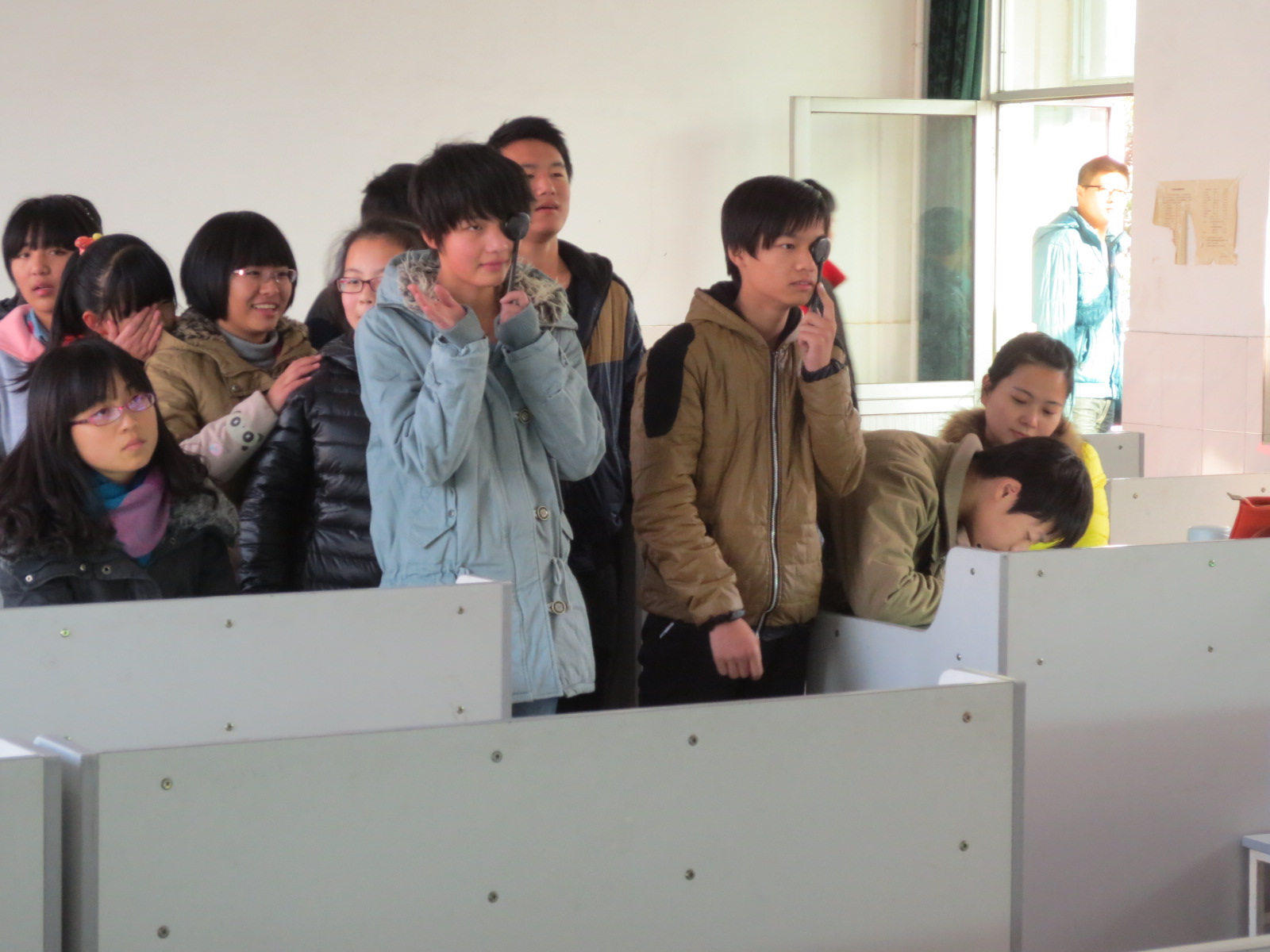 11月28日下午,市疾控中心醫(yī)務(wù)人員一行四人到我校抽測(cè)了初103、高101兩個(gè)班學(xué)生的視力情況。自今年開始,學(xué)生體檢工作由社區(qū)醫(yī)院分擔(dān),市疾控中心帶隊(duì)領(lǐng)導(dǎo)說(shuō),此次抽測(cè)是為了檢查社區(qū)醫(yī)院的體檢工作質(zhì)量,進(jìn)一步督促社區(qū)醫(yī)院認(rèn)真做好學(xué)生的體檢工作。
