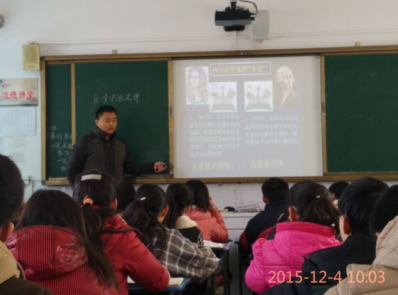 12月4號(hào)上午,我校化學(xué)組開(kāi)展教研活動(dòng),于捷老師在初302班進(jìn)行了課題為“質(zhì)量守恒定律”的公開(kāi)課教學(xué)。
