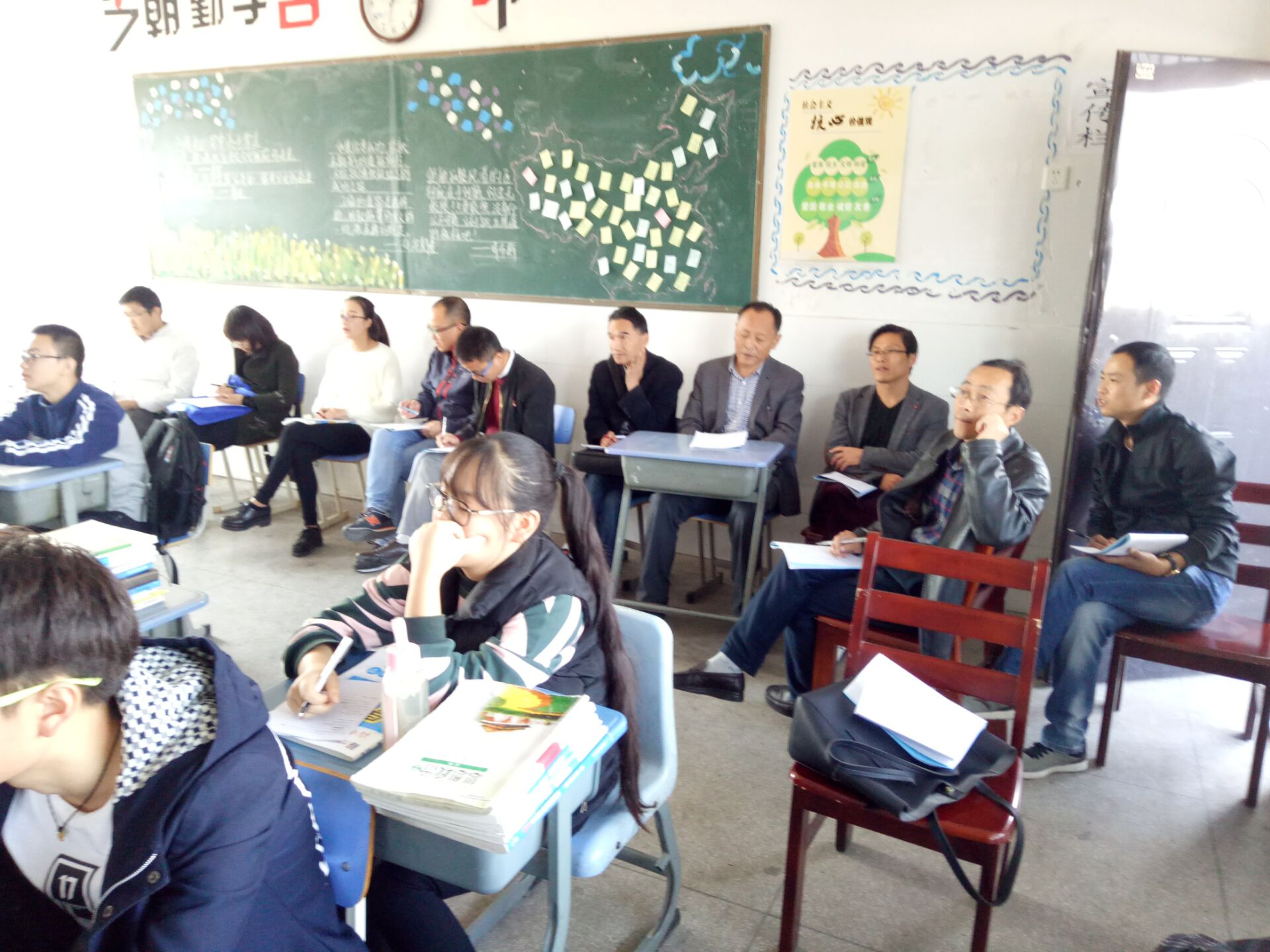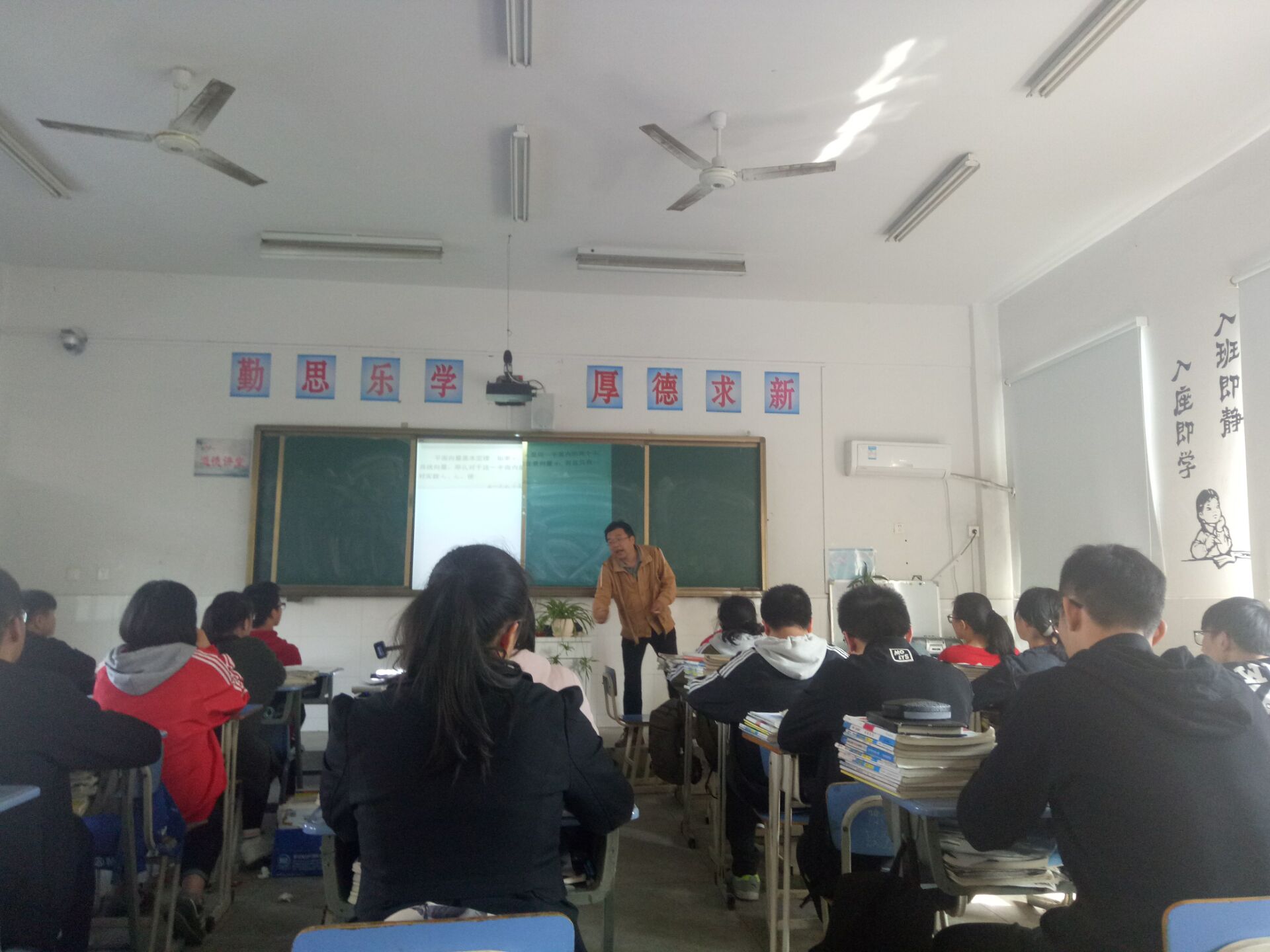 10月17日下午,數(shù)學(xué)組吳笑達(dá)、唐振宏老師師舉行了校內(nèi)公開課展示,吳笑達(dá)老師上的課是《高三復(fù)習(xí)——正余弦函數(shù)圖像的性質(zhì)》,唐振宏老師上的課是《高三復(fù)習(xí)——平面向量基本定理及其應(yīng)用》。兩位老師采用的都是多媒體教學(xué),吳老師在課堂的一開始就給學(xué)生放映了歷年的高考題,學(xué)生發(fā)現(xiàn)三角函數(shù)正余弦圖像基本是每年的必考題,提高了學(xué)生的重視程度。后面先復(fù)習(xí)圖像,再有針對性的給出不同的例題進(jìn)行鞏固。唐老師在不同的參考資料上選取了很好的例題,通過投影儀展示給學(xué)生,每道題講解非常細(xì)致,板書也非常清楚詳細(xì)。數(shù)學(xué)組老師參與了聽課,課后對兩位老師的課進(jìn)行了點評,給出了非常好的建議。