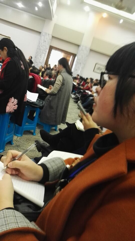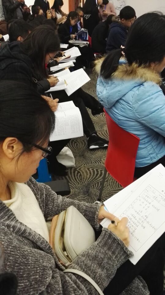 二十四日下午一時,我們早早來到禮堂,禮堂內(nèi)卻已是人山人海。后得知,許多本來是被分到初中組的聽課老師也慕名而來。偌大的禮堂椅子竟不夠坐了,后來的老師只有借來塑料凳子,盡管這樣大家也認真積極地拿出筆記本擱在膝蓋上準備學(xué)習(xí)記錄。