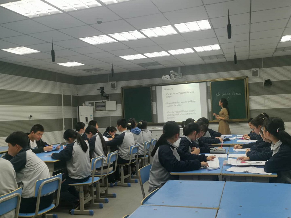 楊翠老師則帶領學生欣賞了短篇小說《The wrong letter》。楊老師充分利用書本上的插圖,引導孩子認識到不要以貌取人的道理。在教學的過程中,楊老師循循善誘,層層深入,力圖培養(yǎng)孩子閱讀英文小說的興趣和良好習慣。