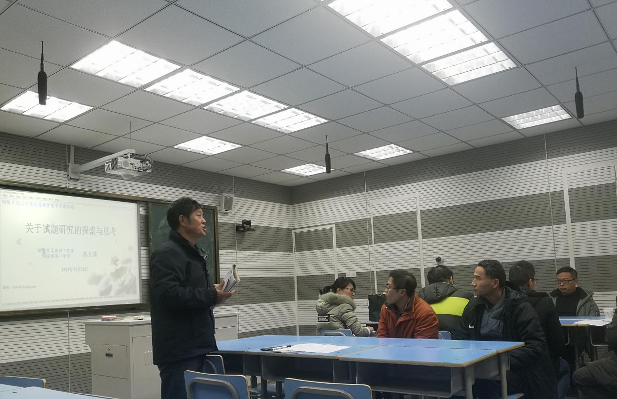 最后工作室領(lǐng)銜人陳良驥老師作《關(guān)于試題研究的一些探索與思考》微報(bào)告。報(bào)告中,陳老師分享了他自己近年來(lái)在試題研究過(guò)程中的心得體會(huì),介紹了試題研究的必要性,從具體試題案例中分析,生動(dòng)有趣地從個(gè)別研究與題組研究?jī)蓚(gè)角度講述了試題研究的方法。