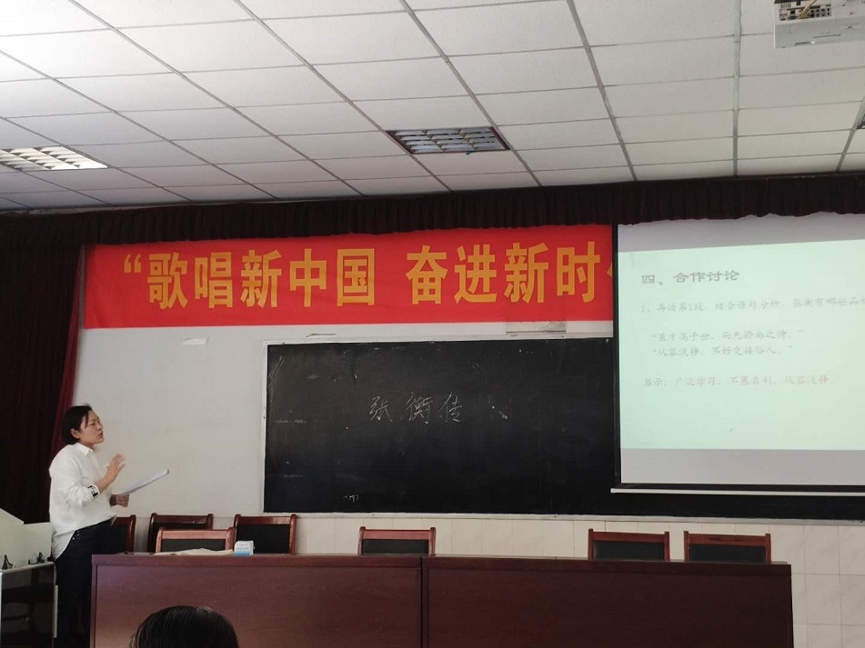 李琳老師則展示了高中文言文《張衡傳》的教學。李老師語言生動,授課深入淺出,將文本范例與高考文言文相掛鉤,又不拘泥守舊,提出不少耐人深思的問題。