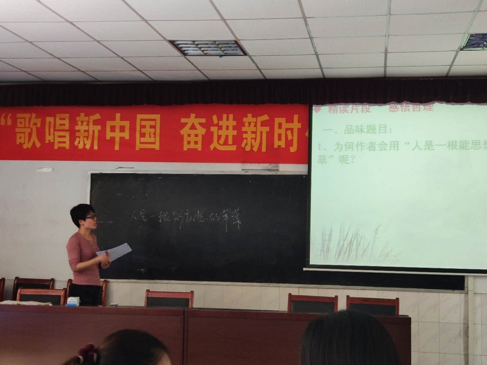 任娟老師展示的是《人是一根能思想的葦草》。本文是外國譯制作品,短小精悍,思想性很強。任老師用比較分析和精讀的方法賞析本文,教學方法靈活新穎。