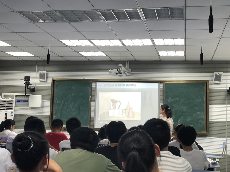 劉永萍老師上的是《色彩靜物畫》,教學(xué)過程中,讓學(xué)生了解了色彩靜物畫的風(fēng)格和表現(xiàn)形式是多種多樣的,認(rèn)識(shí)到色彩靜物畫需要對(duì)靜物的色彩關(guān)系進(jìn)行加工,才能既富有對(duì)比變化又和諧統(tǒng)一。通過學(xué)習(xí),使學(xué)生理解色彩和風(fēng)格的關(guān)系,增強(qiáng)對(duì)生活的熱愛,提高審美品位。課堂氣氛活躍,學(xué)生積極性很高