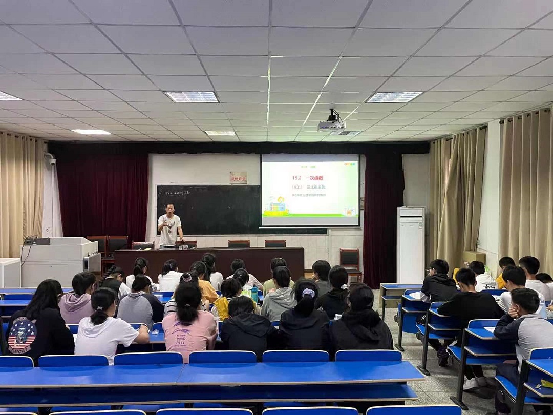 5月11日下午,我校數(shù)學(xué)組在階梯教室開展校內(nèi)公開課教研活動,張長生、阮翰老師分別進行課堂展示。張長生老師上的是高三二輪復(fù)習(xí)課《多面體的外接球問題》,張老師首先進行了考情分析,向?qū)W生展示高考的題型與分值。隨后從不同角度給出題型,每道題分析后給出方法總結(jié)。阮翰老師上的是《正比例函數(shù)》,前面學(xué)生已經(jīng)學(xué)過了一次函數(shù),這節(jié)課讓學(xué)生寫函數(shù)再找規(guī)律,最后總結(jié)正比例函數(shù)的定義和性質(zhì)。數(shù)學(xué)組教師參與了此次活動,課后老師們進行了評課交流,此次活動取得了較好的效果!