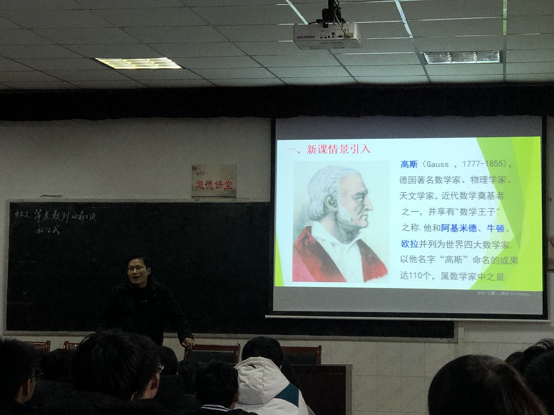 汪之廣老師的課題是《等差數(shù)列的前n項(xiàng)和公式(第1課時)》,汪老師在課堂開頭就介紹了本節(jié)課的教學(xué)目標(biāo),讓學(xué)生做到心中有數(shù)。在引入環(huán)節(jié),介紹了“數(shù)學(xué)王子”高斯的故事,激發(fā)了學(xué)生的求知欲,體現(xiàn)了數(shù)學(xué)的文化價值。公式推導(dǎo)過程中,選取了鋼管堆放模型,生動形象,培養(yǎng)了學(xué)生“數(shù)學(xué)建模”的學(xué)科素養(yǎng)。汪老師的教學(xué)語言活潑詼諧而又不失嚴(yán)謹(jǐn),易于學(xué)生理解。