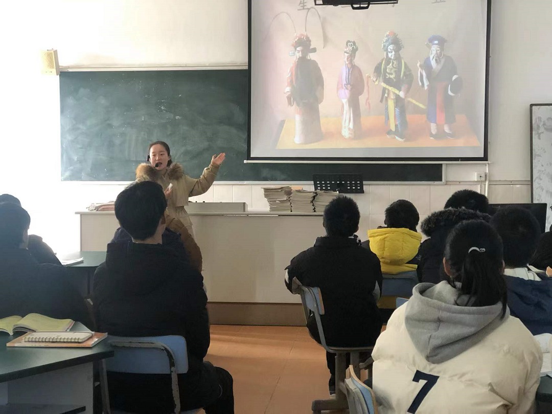 第三節(jié)課吳娛婷老師在高一(2)班上的是《國粹京劇》。吳老師給學(xué)生們講解了京劇的由來、四大行當(dāng)、絕技表演等相關(guān)知識,帶領(lǐng)學(xué)生們欣賞了四大名旦之首梅蘭芳先生的代表作傳統(tǒng)京劇《貴妃醉酒》片段《海島冰輪初轉(zhuǎn)騰》,介紹了梅派唱腔特點,引導(dǎo)學(xué)生對比欣賞現(xiàn)代京劇《迎來春色換人間》,總結(jié)傳統(tǒng)京劇與現(xiàn)代京劇的區(qū)別。在課上,吳老師還帶領(lǐng)同學(xué)們學(xué)習(xí)了旦角的經(jīng)典手勢動作,讓同學(xué)們感受到中國經(jīng)典傳統(tǒng)文化—國粹京劇的魅力。