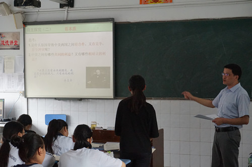 2016年6月12日上午,政治組張勝利老師在高104班、周仁林老師在高206班進(jìn)行公開(kāi)課教學(xué)。張老師以中美關(guān)系為主線,以最新時(shí)政熱點(diǎn)為素材,進(jìn)行了《國(guó)際關(guān)系的決定因素——國(guó)家利益》的新授課教學(xué),教學(xué)過(guò)程設(shè)計(jì)巧妙,課堂上積極引導(dǎo)學(xué)生自主探究。周老師為了幫助學(xué)生進(jìn)行學(xué)業(yè)考試的復(fù)習(xí)迎考,進(jìn)行了哲學(xué)第二單元的復(fù)習(xí)課教學(xué)。周老師按照考綱要求,梳理了主要考點(diǎn),幫助學(xué)生構(gòu)建知識(shí)體系,強(qiáng)調(diào)了易錯(cuò)易混點(diǎn)。