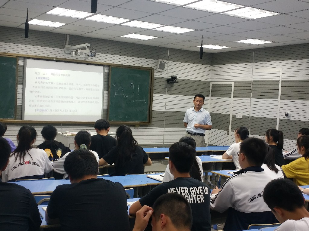 第三節(jié)課,周仁林老師進(jìn)行了《政治客觀題四類題型方略》的二輪復(fù)習(xí)課教學(xué)。周老師通過典型例題的剖析,引導(dǎo)學(xué)生掌握坐標(biāo)曲線類、傳導(dǎo)類、漫畫類、引言類等四種高考?嫉目陀^題的題型特點和解題方法,對復(fù)習(xí)備考具有很強(qiáng)的指導(dǎo)作用。