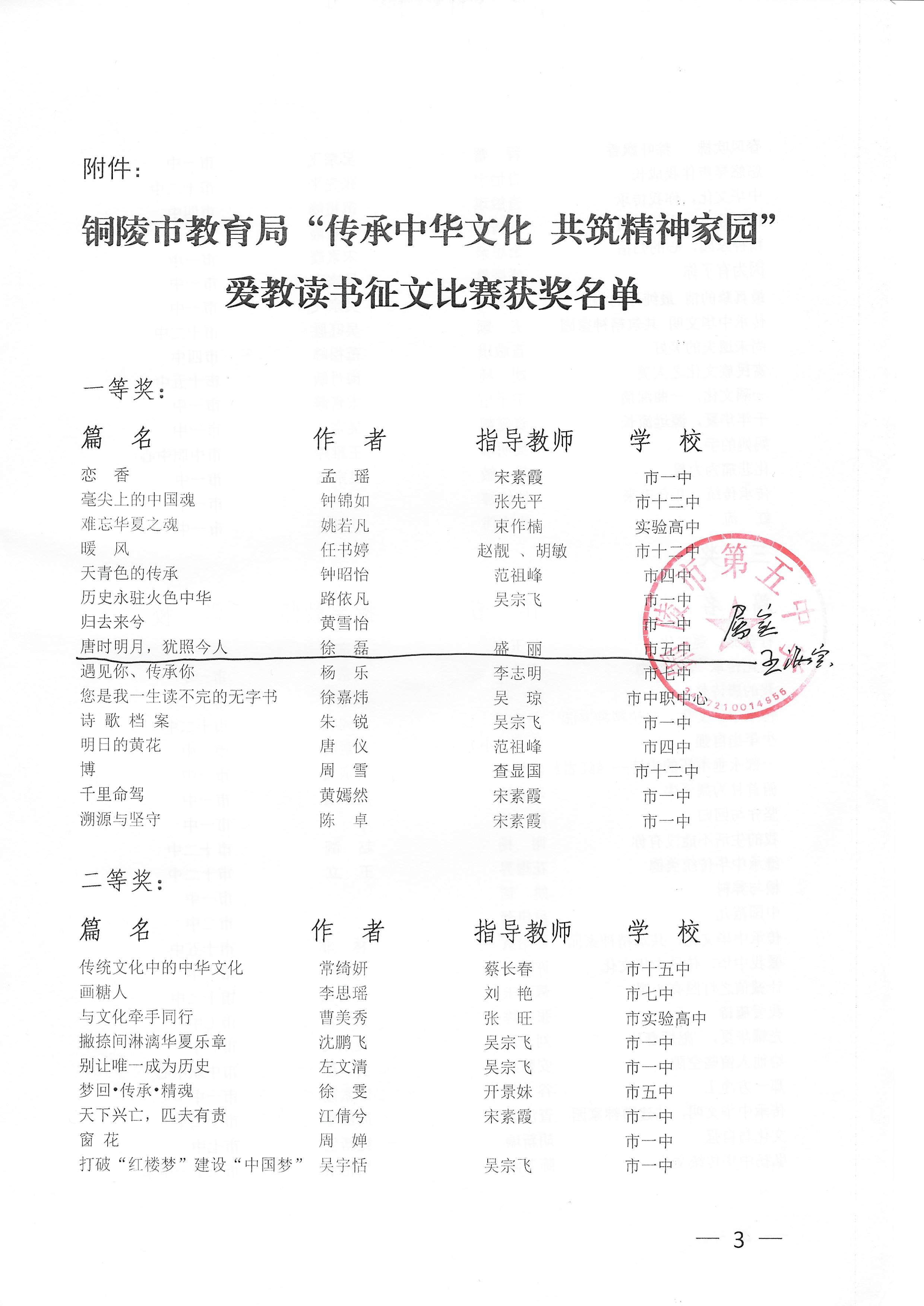 2015年,她輔導(dǎo)的倪慧同學(xué)榮獲了全國(guó)中學(xué)生愛(ài)國(guó)主義讀書(shū)征文活動(dòng)全國(guó)一等獎(jiǎng);2016年,她指導(dǎo)徐磊同學(xué)榮獲銅陵市愛(ài)教讀書(shū)征文比賽一等獎(jiǎng),并獲“優(yōu)秀輔導(dǎo)教師”稱(chēng)號(hào);2019年她指導(dǎo)的次旺拉宗同學(xué)在現(xiàn)場(chǎng)直播的全國(guó)中學(xué)生愛(ài)國(guó)主義教育演講比賽中,榮獲全國(guó)一等獎(jiǎng)。盛麗老師作為優(yōu)秀指導(dǎo)教師代表安徽省在北京電視臺(tái)接受表彰。