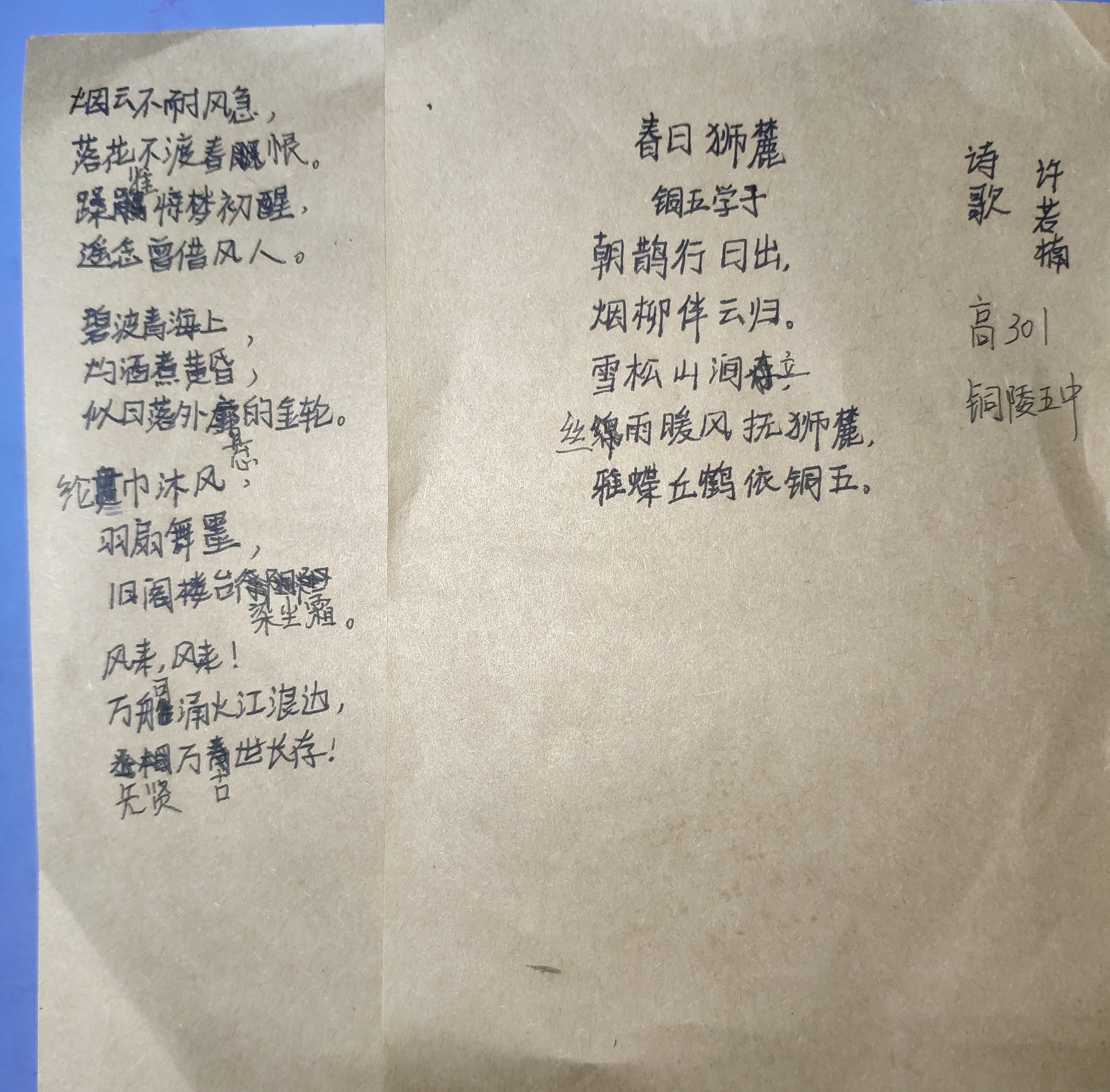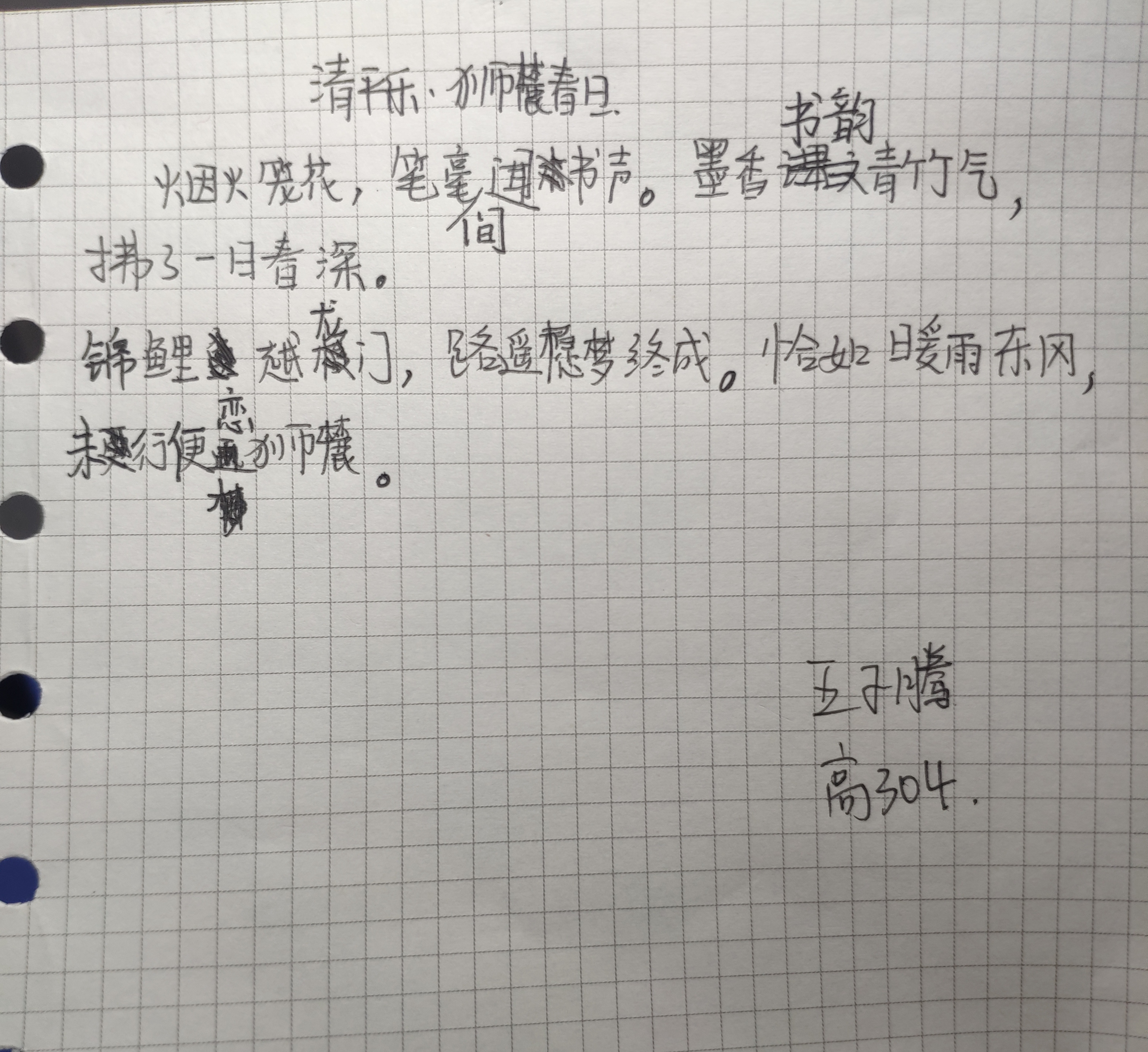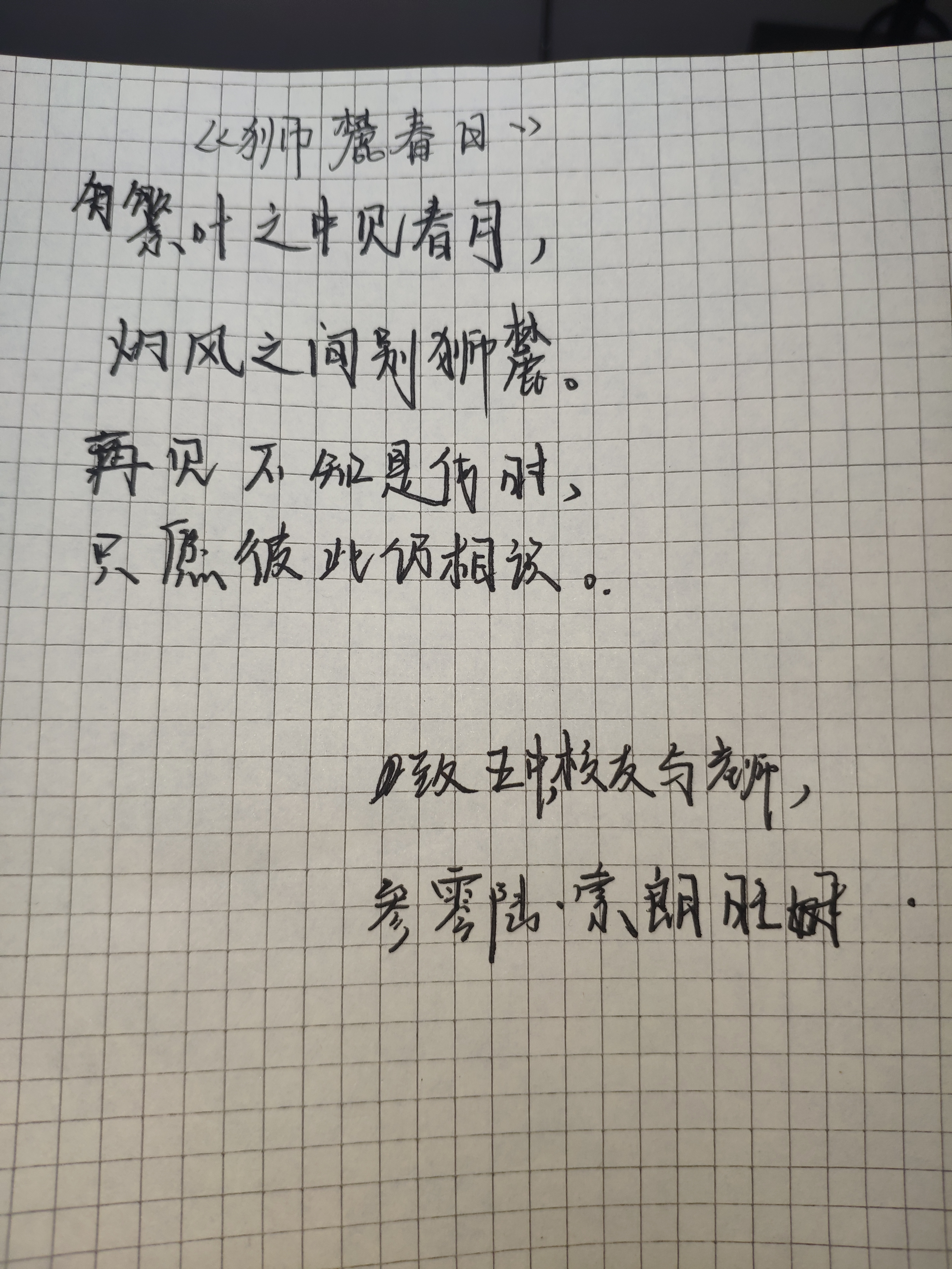 課程最后,盛老師與大家分享了自己的古風(fēng)作品以及創(chuàng)作體會。同學(xué)們受到鼓舞,聽著古風(fēng)曲子拿起筆,各自即興創(chuàng)作了一篇古風(fēng)歌詞。學(xué)生們的作品各有特色,富有意趣。