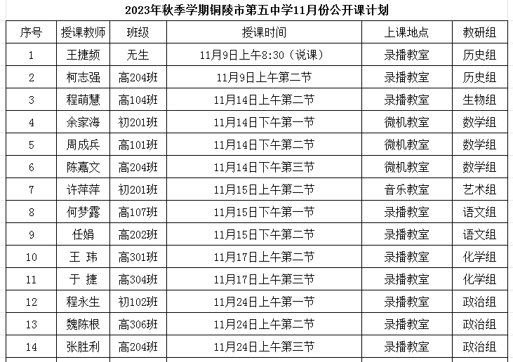 獅麓礪教 | 銅陵市第五中學2023年秋季學期11月份公開課計劃