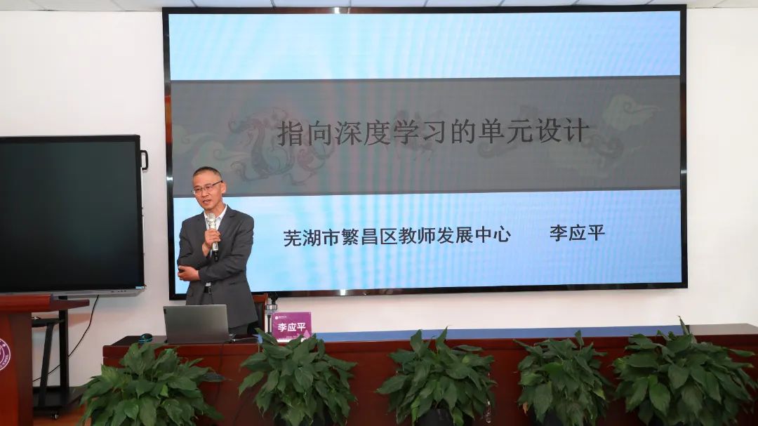 蕪湖市繁昌區(qū)歷史教研員李應(yīng)平老師的一場(chǎng)題為《指向深度學(xué)習(xí)的單元設(shè)計(jì)》的精彩講座揭開了下午研討活動(dòng)的序幕。李老師系正高級(jí)教師,安徽省首屆優(yōu)秀教研員,安徽省學(xué)術(shù)和技術(shù)帶頭人,國培計(jì)劃教育部專家?guī)斐蓡T,安徽師范大學(xué)碩士生導(dǎo)師,享受省政府特殊津貼。講座中,李老師圍繞“深度學(xué)習(xí)”“指向深度學(xué)習(xí)的課時(shí)設(shè)計(jì)”“指向深度學(xué)習(xí)的單元設(shè)計(jì)”等主題進(jìn)行了系統(tǒng)闡釋。他強(qiáng)調(diào)深度學(xué)習(xí)是要讓歷史教學(xué)深入學(xué)生的心靈、深入學(xué)生的精神世界,結(jié)合豐富的案例闡明了指向深度學(xué)習(xí)的課時(shí)設(shè)計(jì)及單元設(shè)計(jì)的教學(xué)路徑。李老師的講座高屋建瓴,報(bào)告內(nèi)容新穎豐富,既有理論高度,也有實(shí)踐深度。李老師在講座中展現(xiàn)出濃郁的教研情懷和深厚的教研水平,令人感佩。