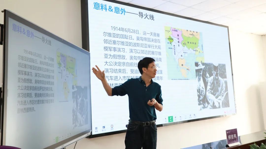 柳昔亮老師的授課課題是高中《中外歷史綱要(下冊(cè))》“第一次世界大戰(zhàn)與戰(zhàn)后國際秩序”。柳老師以泰坦尼克號(hào)的沉沒隱喻一戰(zhàn),以 “意料&意外”“停戰(zhàn)&休戰(zhàn)”“共存&共榮”三個(gè)板塊重構(gòu)教材,運(yùn)用圖片、漫畫、地圖等大量史料全方位描繪一戰(zhàn)的歷史圖景,省思一戰(zhàn)對(duì)人類歷史的深遠(yuǎn)影響。柳老師語言凝練、因循善誘,在深入挖掘教材內(nèi)在邏輯的基礎(chǔ)上,拓寬學(xué)生視野,啟發(fā)學(xué)生思維,浸潤(rùn)歷史學(xué)科素養(yǎng),本課教學(xué)兼具情感溫度與理性厚度,富有張力。