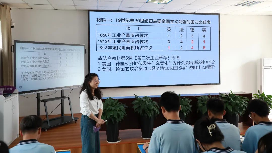谷淳老師的授課課題是九年級(jí)下冊(cè)“第一次世界大戰(zhàn)”。在導(dǎo)入環(huán)節(jié),谷老師別出心裁,以銅陵五中優(yōu)雅的校園環(huán)境與被戰(zhàn)火毀壞的烏克蘭校園做比較,引發(fā)學(xué)生對(duì)戰(zhàn)爭(zhēng)殘酷的思考,切入課題;诔踔袑W(xué)情,谷老師以“必然與偶然·不可避免”“預(yù)想與現(xiàn)實(shí)·出乎意料”“終戰(zhàn)與復(fù)仇·重蹈覆轍”三個(gè)主題對(duì)教材內(nèi)容進(jìn)行適當(dāng)整合,并運(yùn)用圖片、地圖、表格等史料引導(dǎo)學(xué)生進(jìn)入一戰(zhàn)的歷史情境。谷老師做了精致的導(dǎo)學(xué)案,面向全體學(xué)生,與學(xué)生互動(dòng)頻頻,激發(fā)學(xué)生的深層思考和情感投入。整節(jié)課設(shè)計(jì)巧妙,環(huán)節(jié)清晰,氣氛融洽,課堂互動(dòng)高效充分,展現(xiàn)了谷老師極佳的教學(xué)素養(yǎng)。