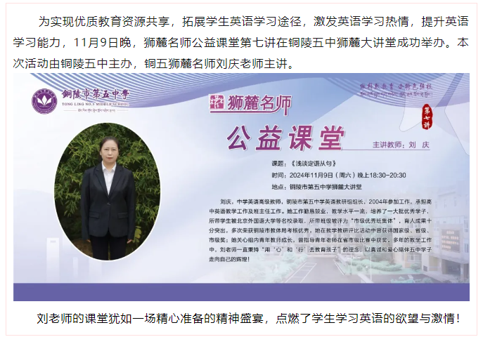上一篇:獅麓礪教 | 銅陵市第五中學(xué)2024-2025學(xué)年第一學(xué)期11月份公開課計(jì)劃