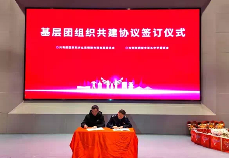 市五中團委與市稅務局團委經(jīng)多次洽談合作達成共建意向,為進一步深入落實黨建帶團建隊建,加強基層共青團經(jīng)驗交流,更好地服務于黨團員青年及青年學生,提升基層團組織的引領力、凝聚力和服務力,簽訂了共建協(xié)議,并與市委組織部、團市委、市教體局、市稅務局共同為銅陵市“青少年稅收普法基地”揭牌。