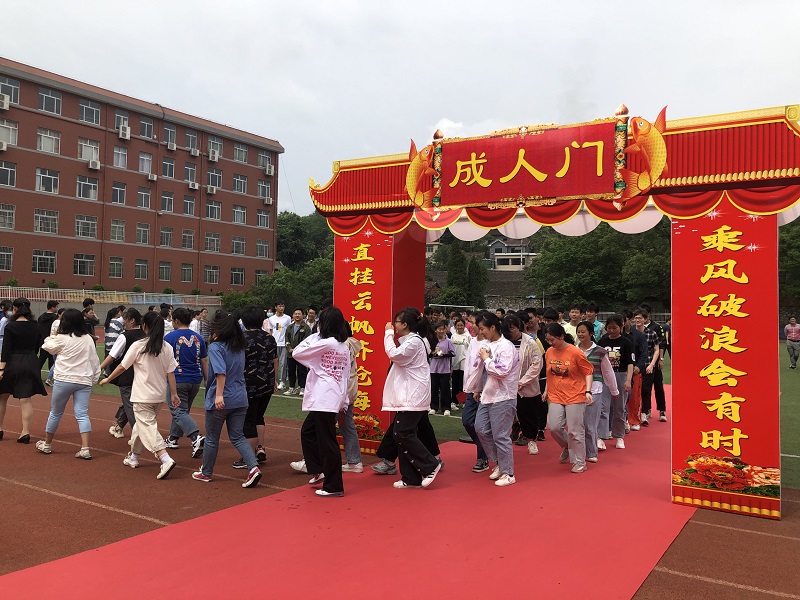 最后,在老師們的陪伴下,伴隨著《年輕的戰(zhàn)場》激情昂揚的音樂 ,同學們滿懷激動的心情,邁著堅實的步伐相繼跨過“成人門”,走過“成人路”,邁向新征程。