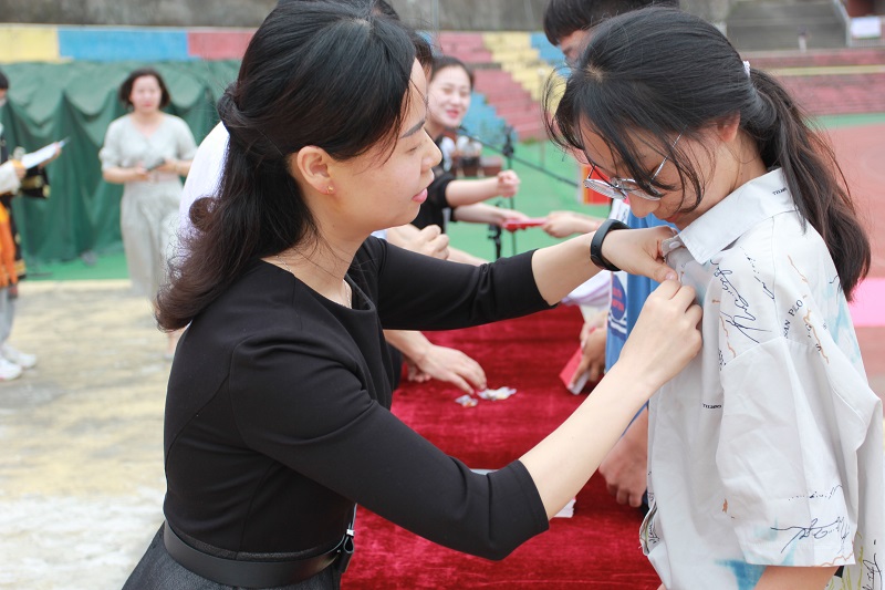 校領導為孩子佩戴徽章