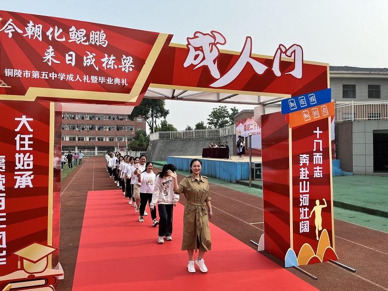 隨后,迎來了隆重的成人禮過成人門儀式,在班主任的帶領(lǐng)下,學(xué)生們緩緩走過成人門紅地毯。