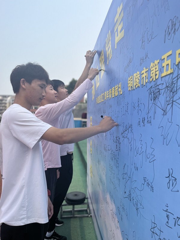 下一項議程,高三代表上臺接受了《中華人民共和國憲法》讀本,校領(lǐng)導(dǎo)祝愿他們能更好地學(xué)法、知法、懂法和用法,規(guī)規(guī)矩矩地走好人生的每一步。同時,高三學(xué)子們還進(jìn)行了成人宣誓儀式,青春的吶喊聲響徹了操場內(nèi)外,也喊出他們奮斗不息、努力拼搏的錚錚誓言和無悔青春。