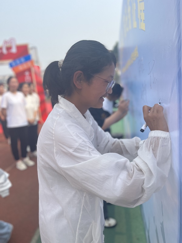 儀式結(jié)束后,全體高三年級師生們,大家互相擊掌致意和鼓勵,來到心愿墻處簽名并合影留念。