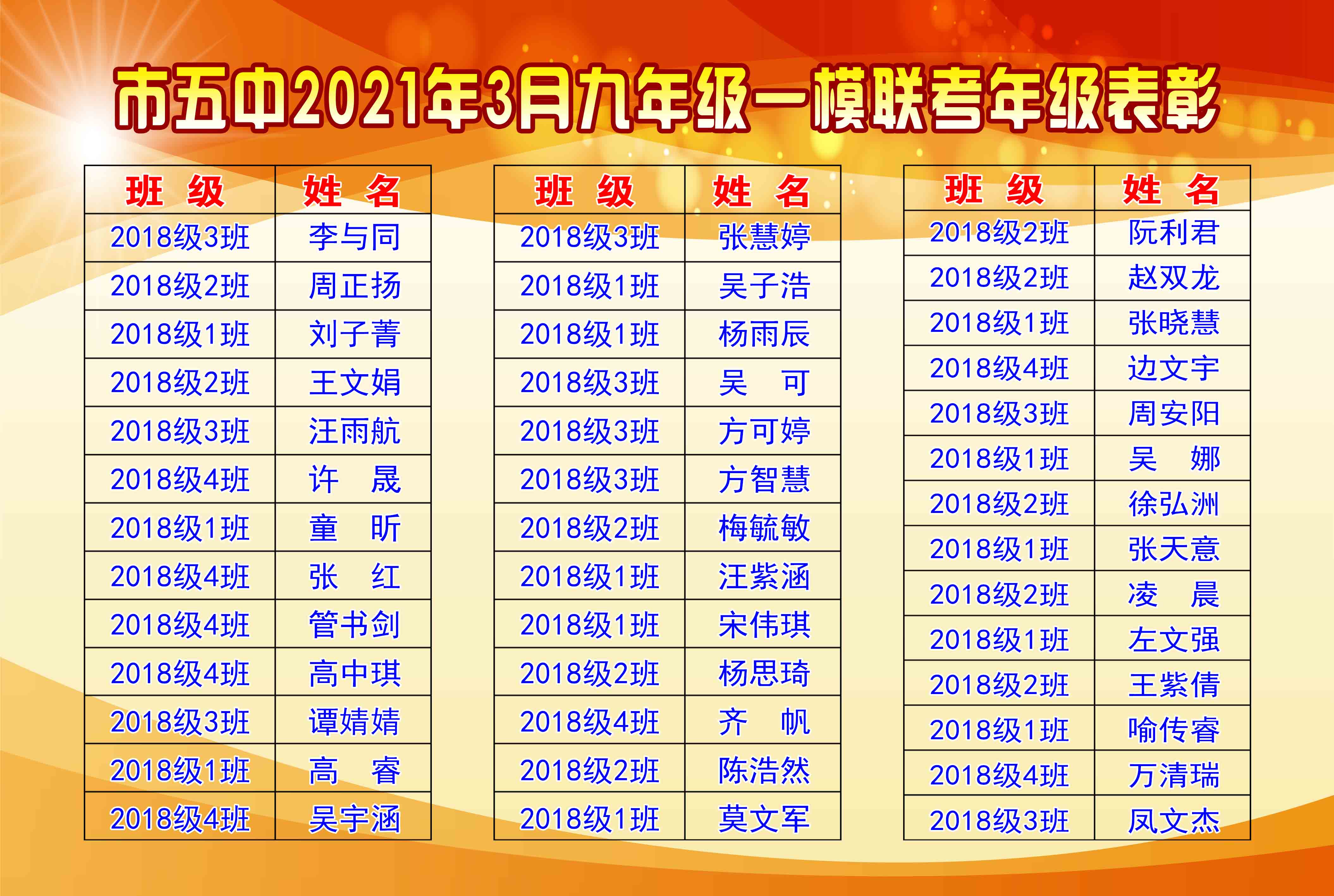 市五中2021年3月九年級一模聯(lián)考年級表彰