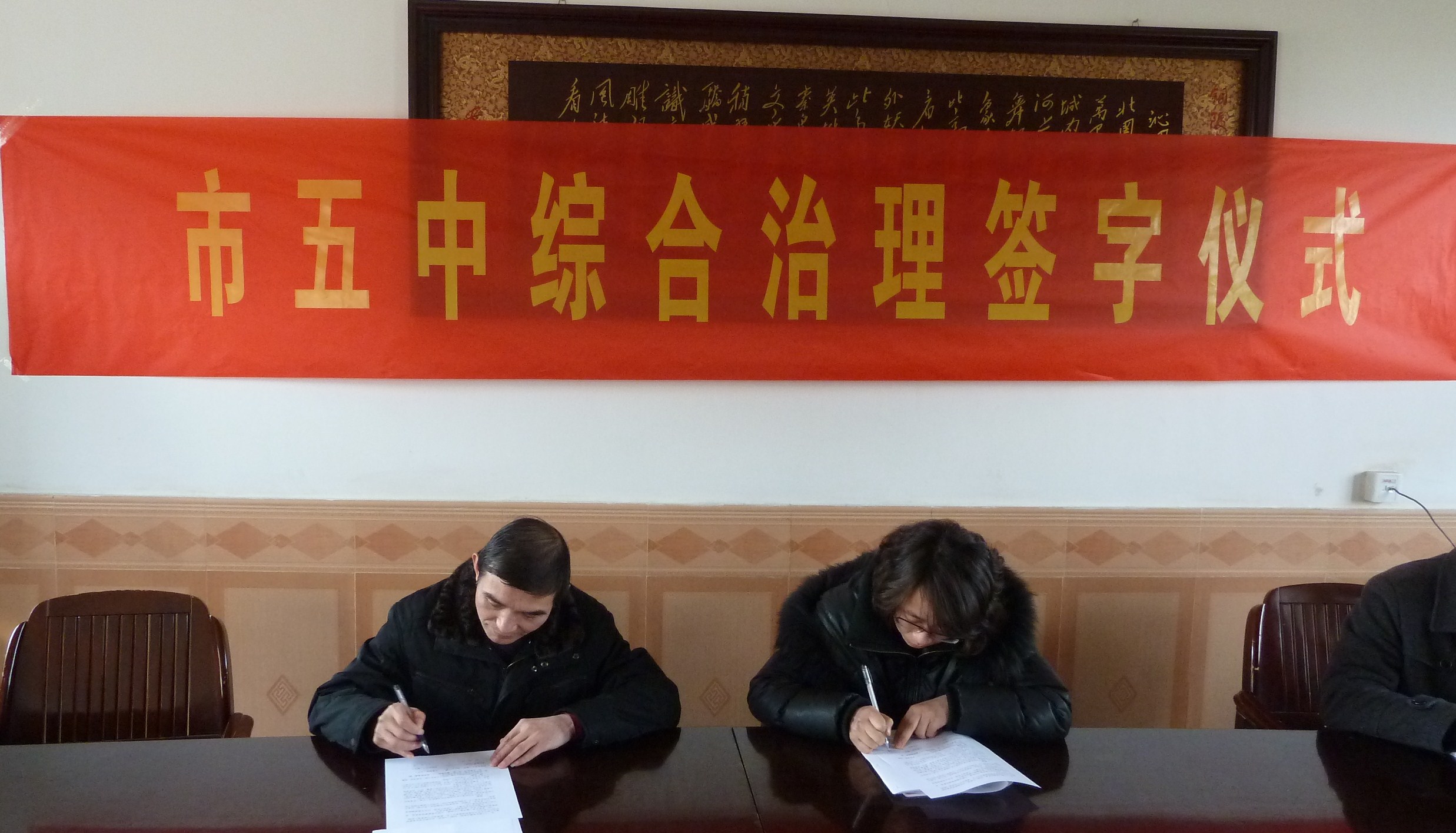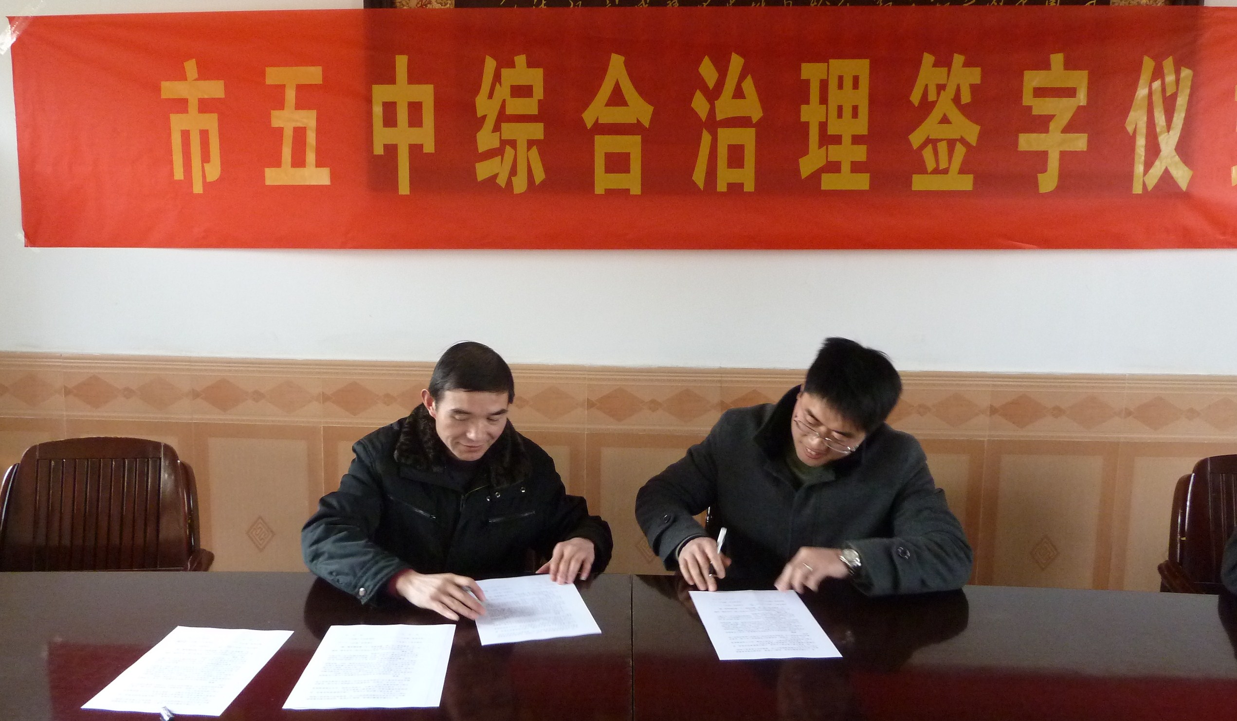 3月12日下午第二節(jié)課,我校專門通過班主任例會(huì),再次組織班主任老師學(xué)習(xí)認(rèn)識(shí)綜合治理工作的重要性,明確工作思路和要求,布置本年度綜治工作的主要任務(wù),姚校長(zhǎng)和楊書記出席會(huì)議并和各班級(jí)簽訂了2012年學(xué)校綜治工作責(zé)任書。我校歷來十分重視“平安校園”建設(shè)工作,隨著工作力度的加大和責(zé)任的落實(shí)到人,五中校園秩序連年保持穩(wěn)定和諧。
