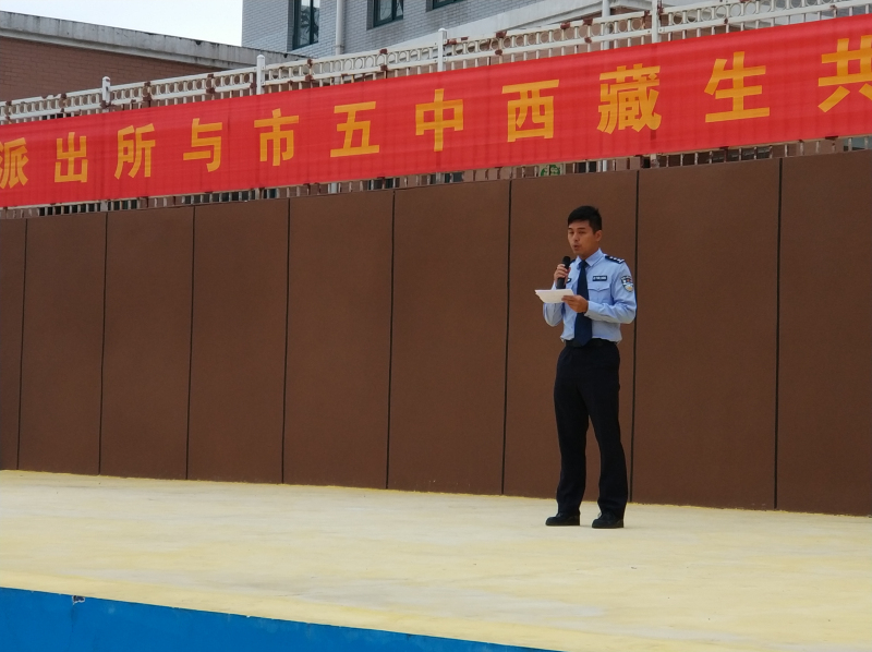 為著力提升廣大青少年尤其是西藏生的反恐防暴意識和應對恐怖襲擊的自救能力,9月29日下午,我校邀請獅子山派出所民警舉行反恐防暴進校園宣傳教育活動,校領導和職能處室、校園安保人員、部分班主任和西藏生參加此次活動。