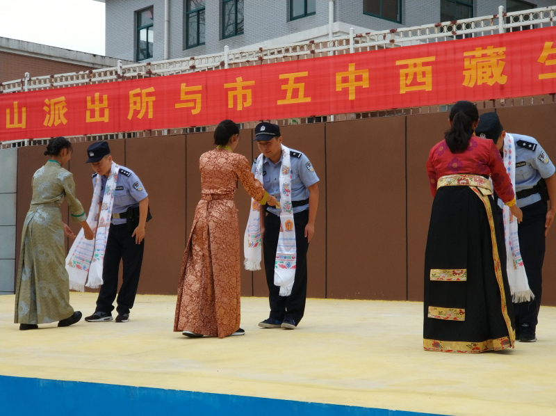 此次宣傳教育活動切實提高了師生和安保人員處置突發(fā)事件的能力,增強了大家的安全防范意識,為創(chuàng)造文明校園環(huán)境打下了堅實基礎,也得到了師生的高度贊許,西藏生還通過敬獻哈達表達對獅子山派出所民警的感謝。