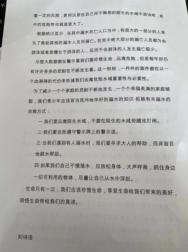通過此次系列活動(dòng)使全體師生有效增強(qiáng)了防溺水安全意識(shí),進(jìn)一步保障了學(xué)生的生命安全,提升了校園安全工作水平。防溺水教育刻不容緩,需要學(xué)校、家庭、社會(huì)三方通力合作,常態(tài)化地開展。
