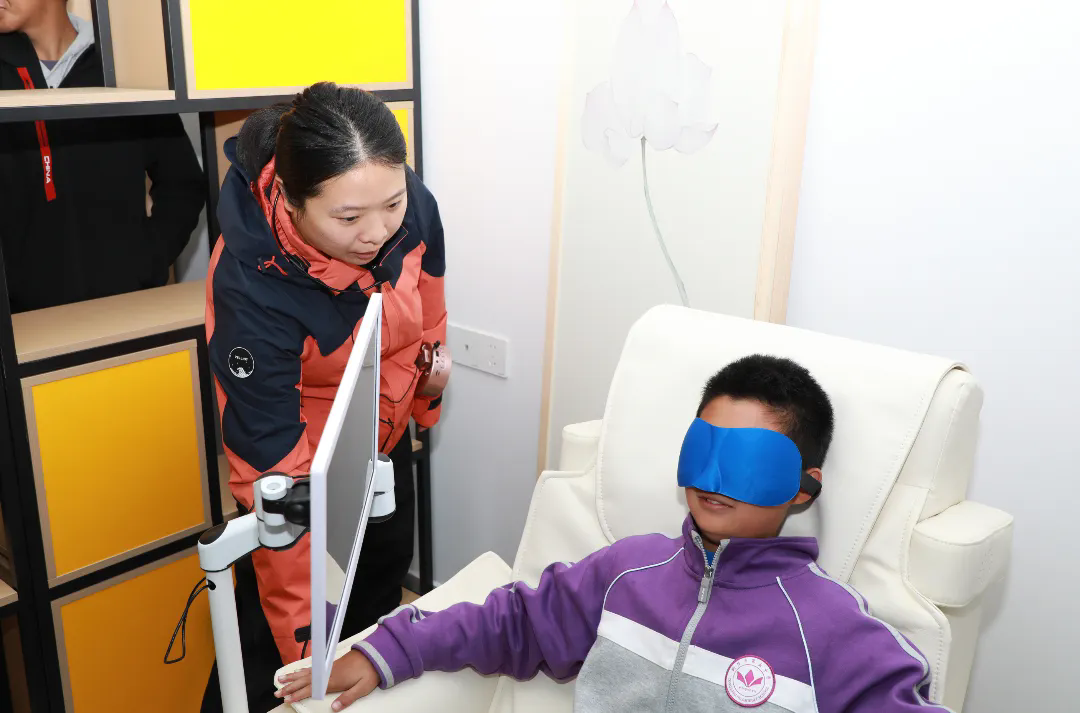 在隨后的參觀體驗(yàn)環(huán)節(jié)中,學(xué)校專職心理健康教師姜雪向大家詳細(xì)介紹了各功能室儀器的用途及特色服務(wù)項(xiàng)目,在場(chǎng)的師生對(duì)中心的設(shè)施和服務(wù)有了更深入的了解。在姜雪老師的指導(dǎo)下,部分學(xué)生還對(duì)輔導(dǎo)中心的設(shè)備進(jìn)行了體驗(yàn)!