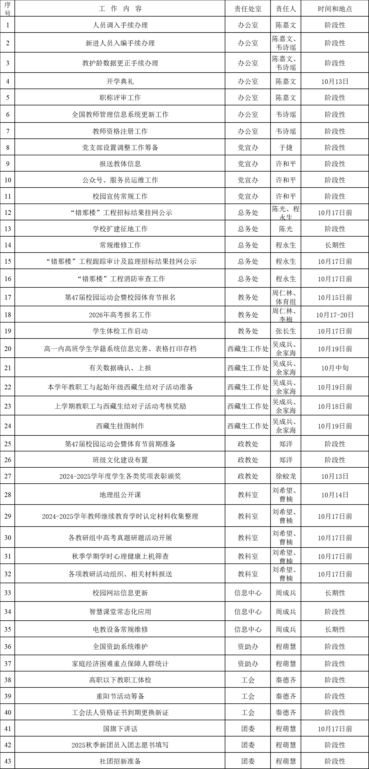 市五中2025-2026學年度第一學期第5、6周工作安排匯總表