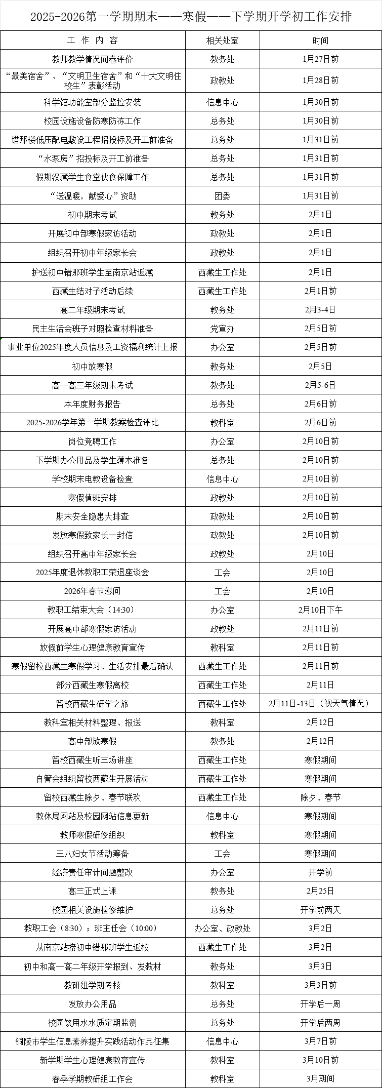 2025-2026第一學期期末——寒假——下學期開學初工作安排