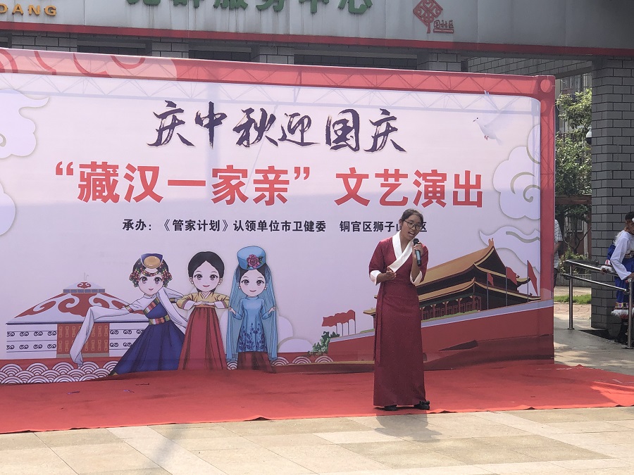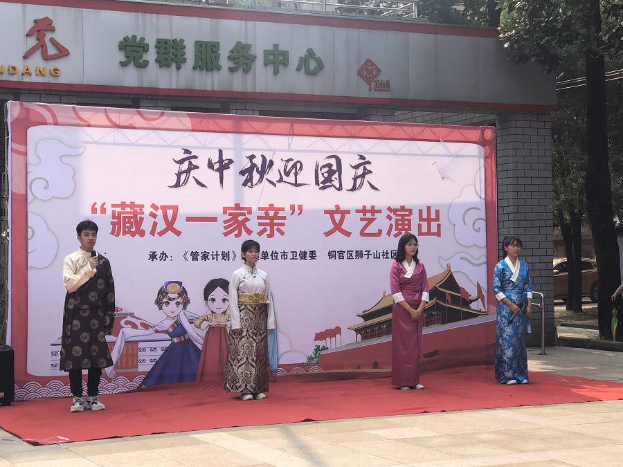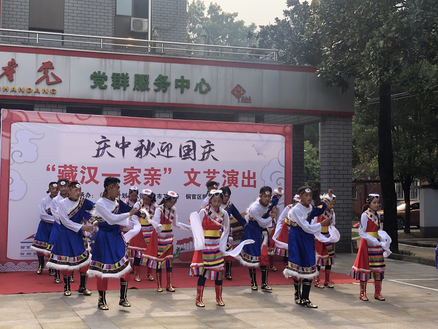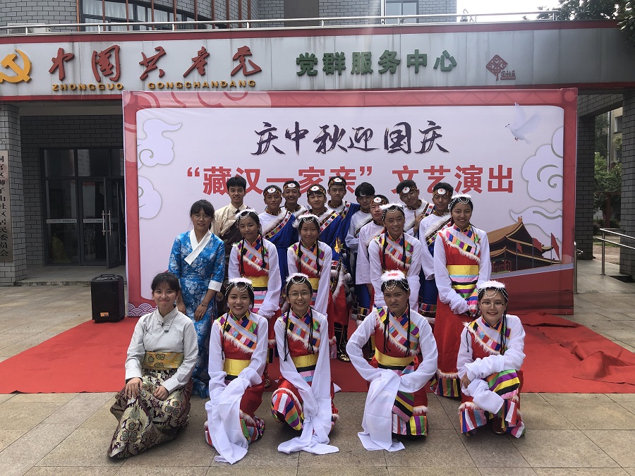 9月11日上午,我校二十名西藏生同學(xué)受邀來到獅子山社區(qū)參加由市衛(wèi)健委和銅官區(qū)獅子山社區(qū)主辦的“慶中秋迎國慶”——“藏漢一家親”文藝演出。同學(xué)們的精彩表演受到觀眾們的熱烈掌聲和一致好評。